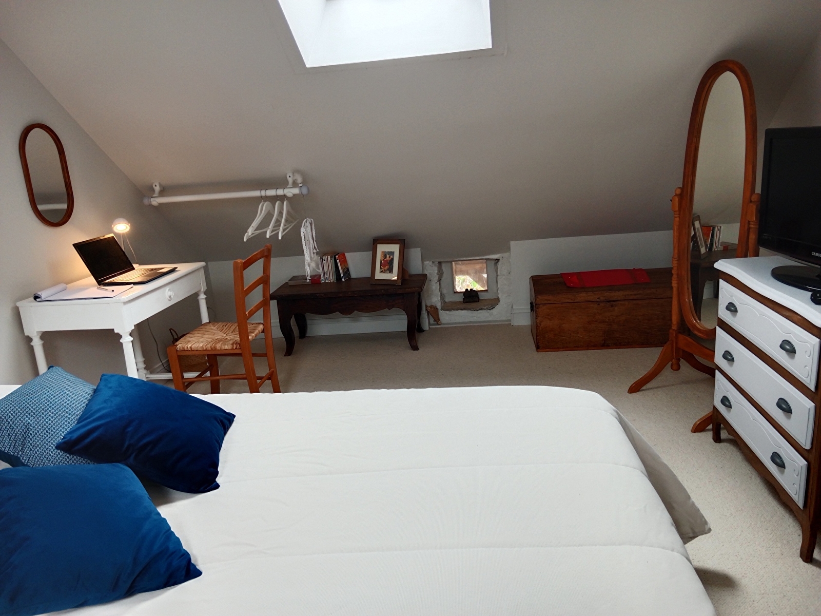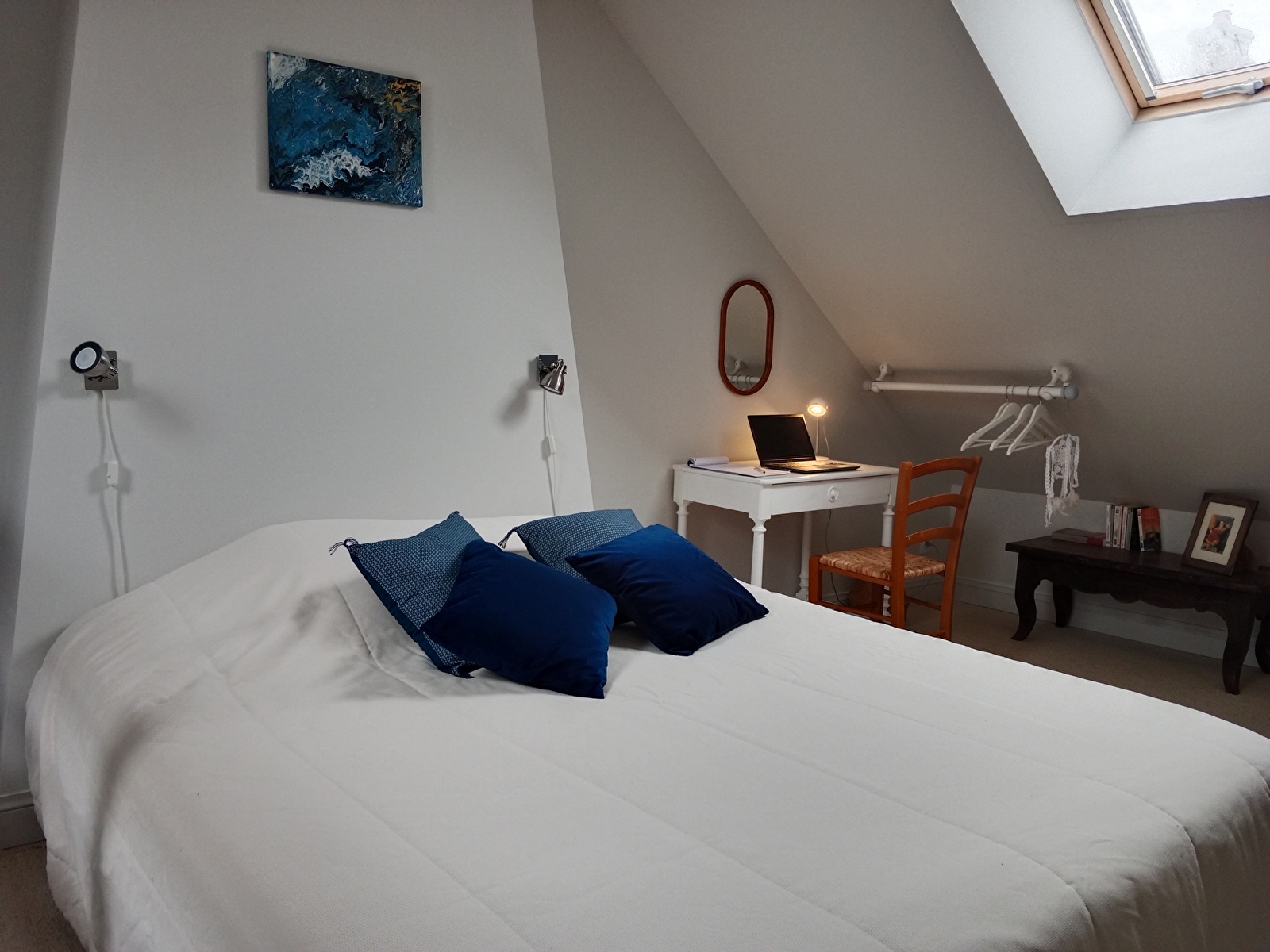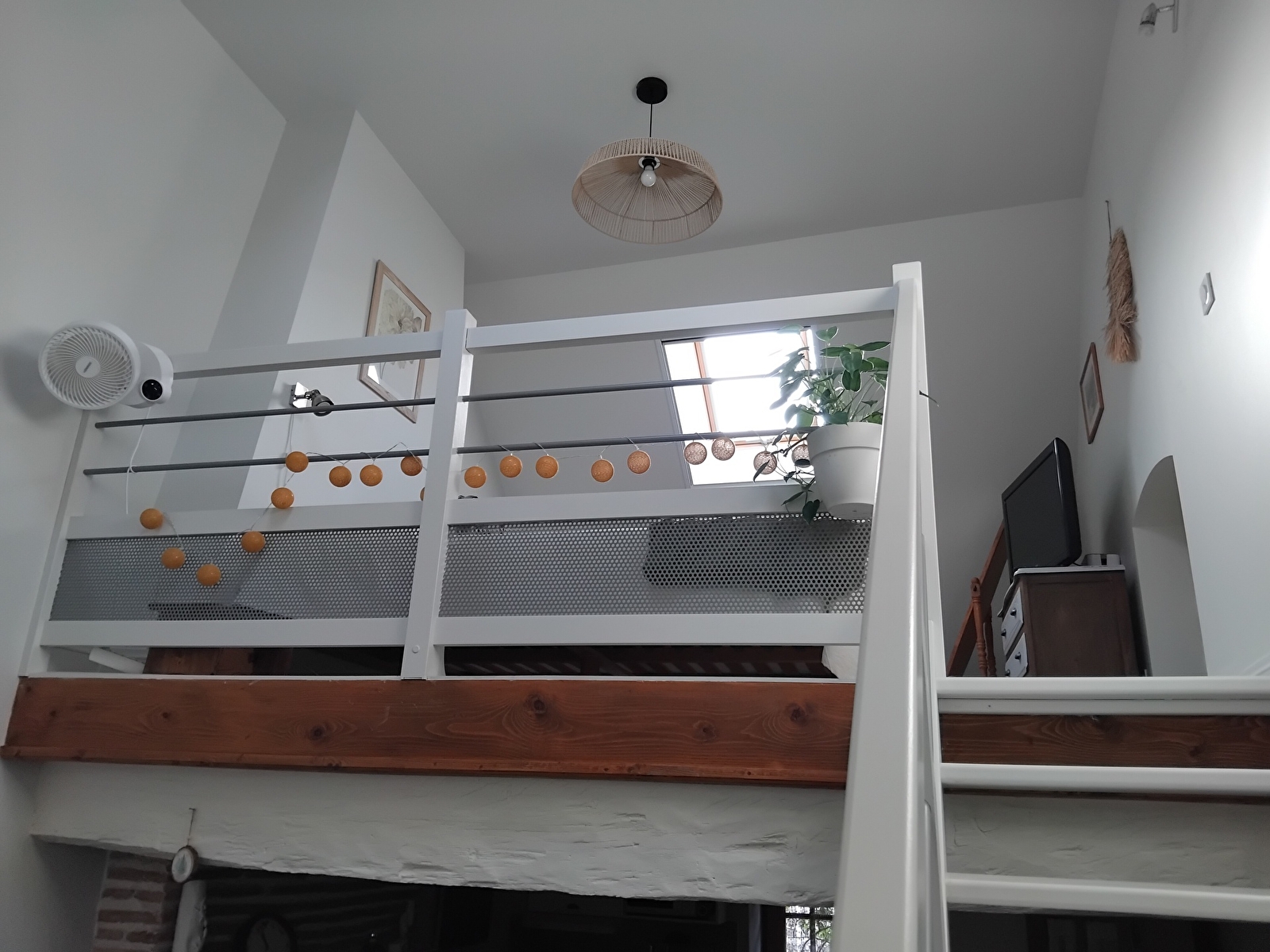 A l'étage un espace agréable en mezzanine, avec son lit de 160, vous accueil pour des nuits reposantes.