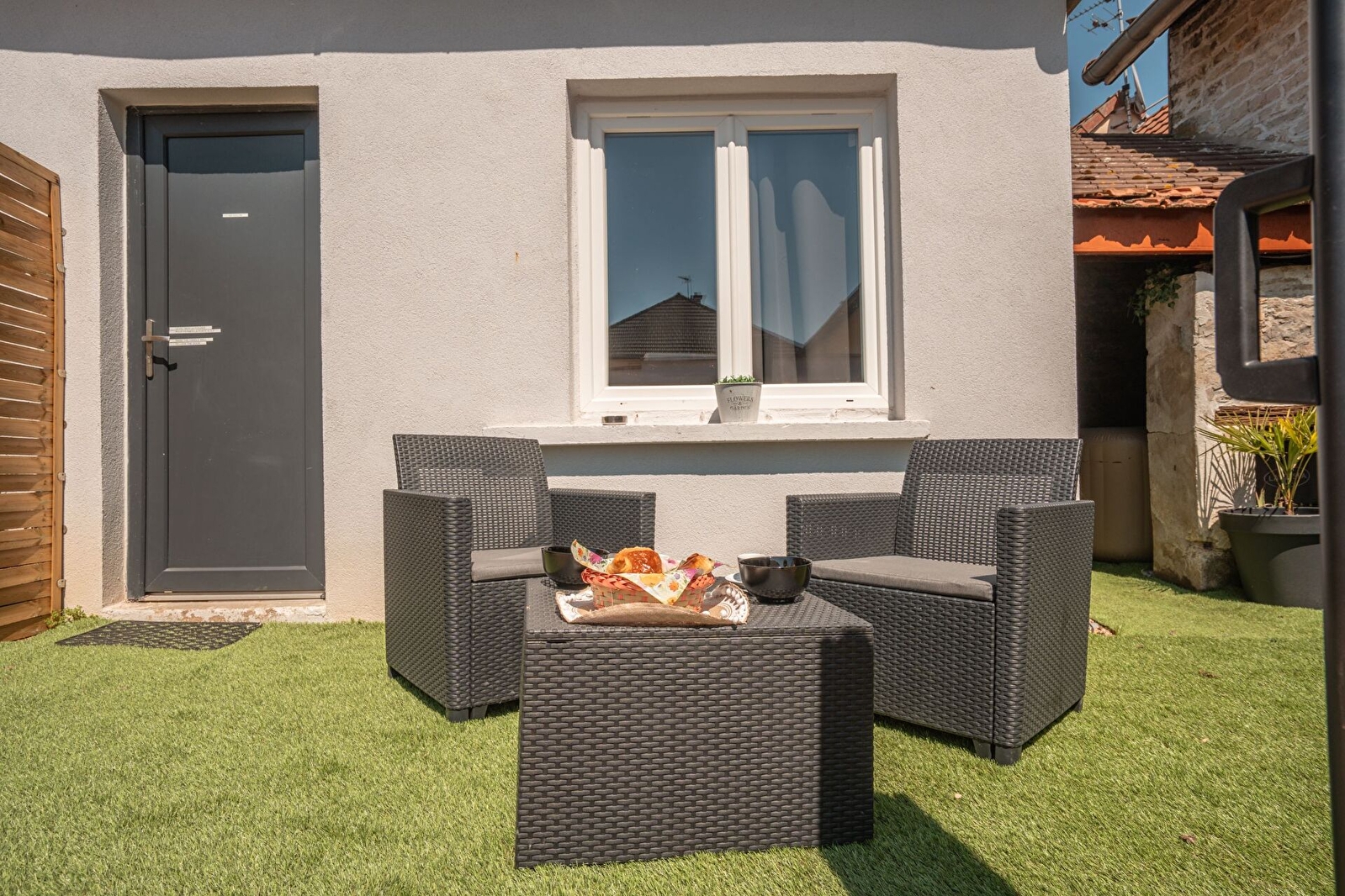 Profitez d'un espace extérieur privé, aménagé de pelouse synthétique et d'un petit salon de jardin, parfait pour savourer apéro ou petit-déjeuner, sans vis à vis grâce à un brise vue, tout en profitant du soleil.