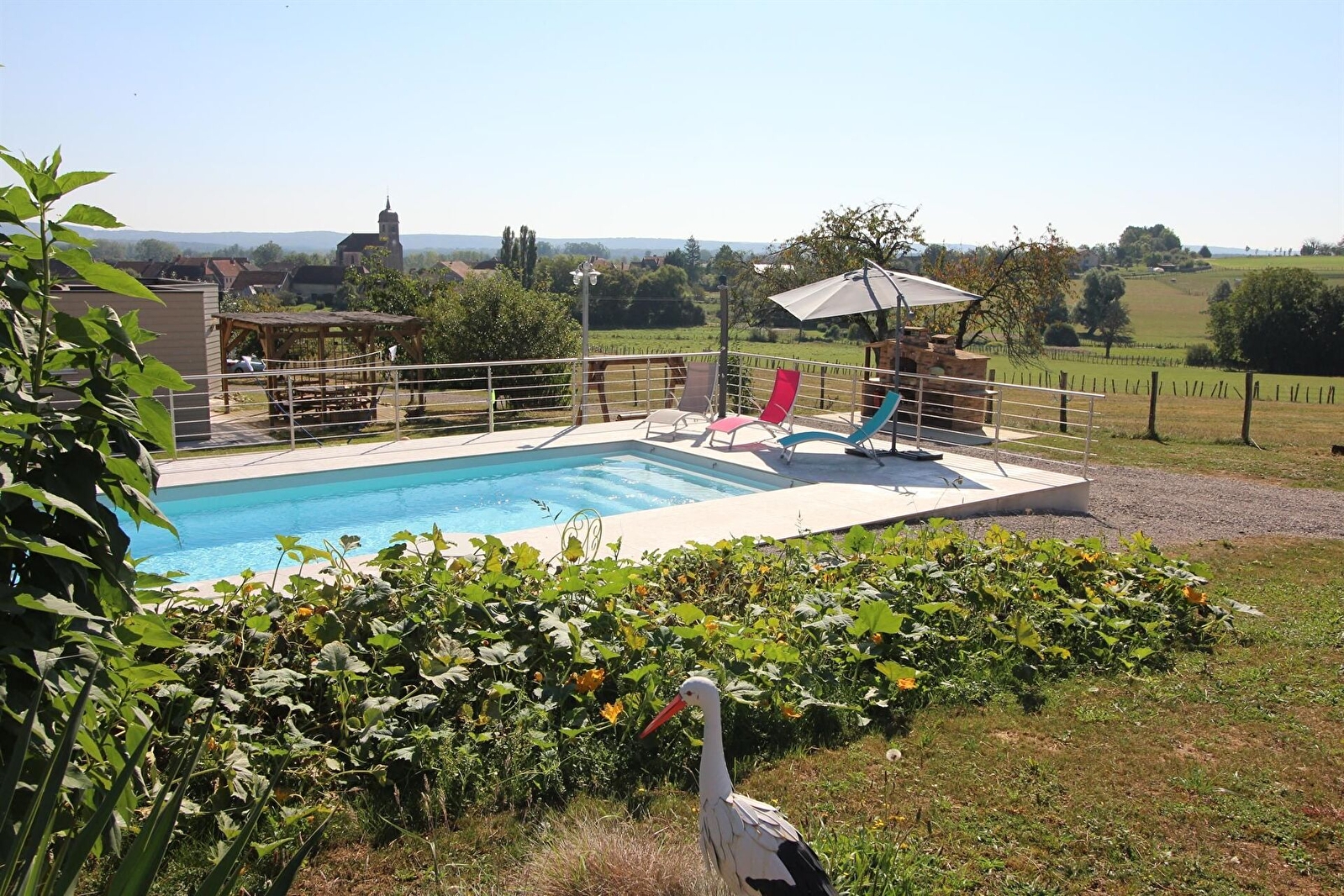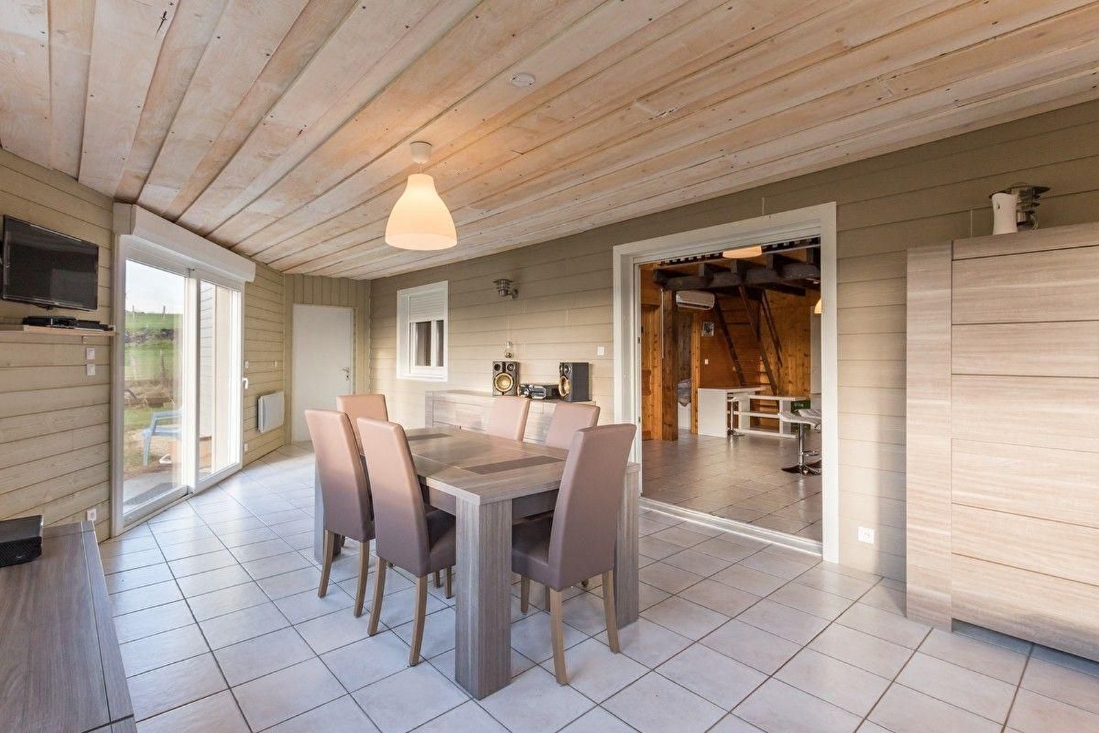 Envie de calme ? un petit nid douillet vous attend à Vy-Le-Ferroux : charmante maison à ossature bois, proposant de plain-pied, une cuisine équipée, un séjour/salle à manger lumineux avec une vue dégagée sur la nature, 2 chambres avec chacune 1 lit 140 cm, une salle d'eau, WC. Chaise haute, réhausseur, 1 lit parapluie. Parking. Piscine de 4 X 7 m, chauffée et sécurisée, ouverte du 1er mai au 30 septembre (selon météo), à partager avec les propriétaires et les locataires de la roulotte située sur la propriété. Terrain de pétanque, table de ping-pong, panier de basket, billard. Jeux de société. Salon de jardin et barbecue. Terrain non clos. Chauffage électrique. Internet WiFi. Le gîte peut également être loué avec la roulotte, pour un total de 8 personnes.