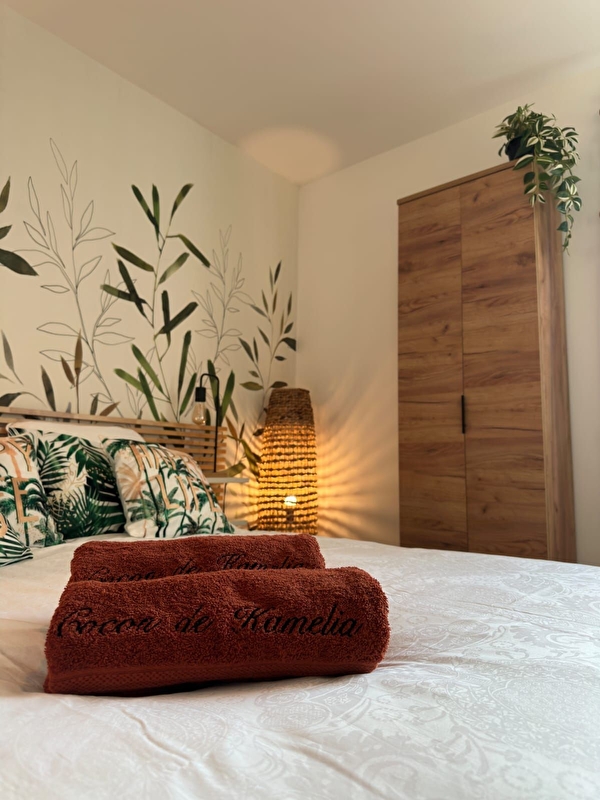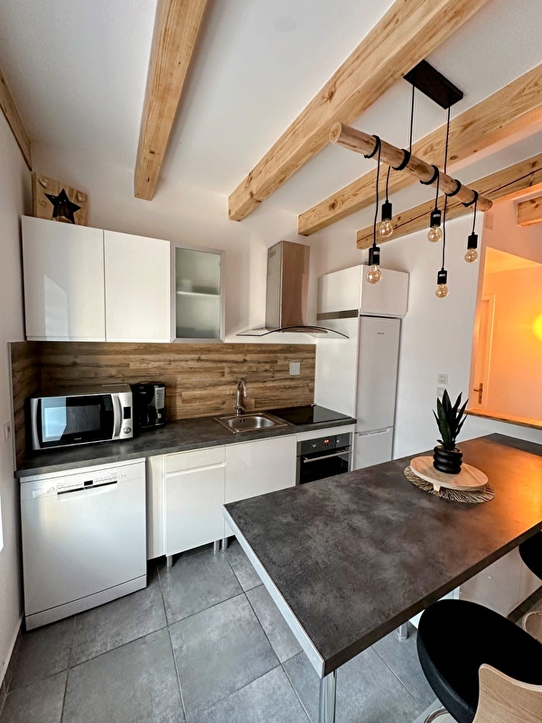 Ce logement de 62 m² proposé en formule tout compris (Ménage inclus, Draps fournis et Lits faits à l'arrivée, Linges de toilettes et charges comprises) peut accueillir jusqu’à 4 personnes (+2 grâce à un canapé convertible dans le salon). Il se compose de deux chambres confortables (1 chambre avec un lit de 140 et une autre avec deux lit de 90 pouvant faire un lit de 180), d’une cuisine entièrement équipée (cafetière, machine à café Nespresso Vertuo, grille pain, appareil à fondue, appareil à raclette et une table dépliable de 10 personnes est à disposition si besoin) ainsi que d’une salle d’eau moderne avec lave-linge et sèche cheveux.