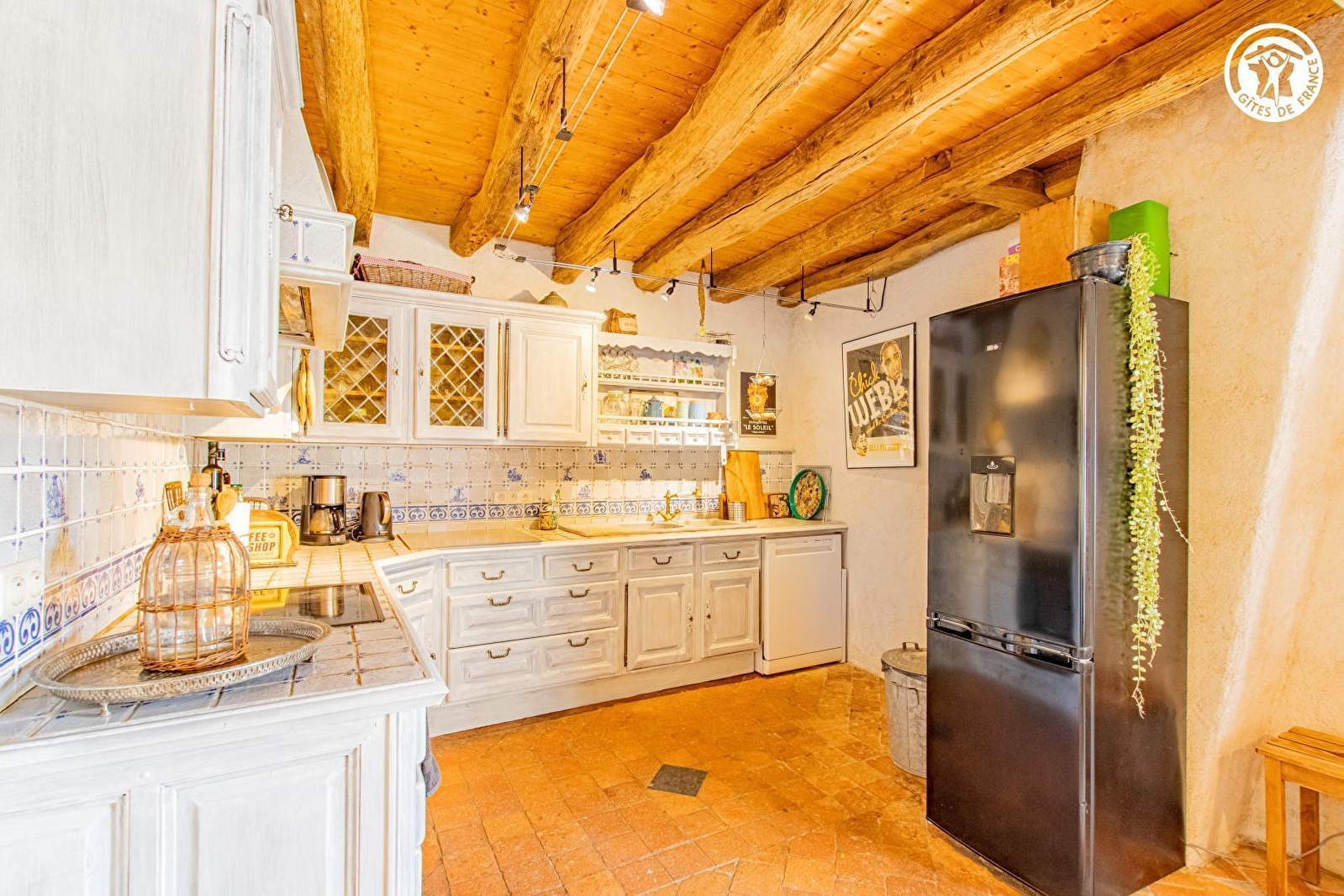 Composition : Gîte mitoyen à l'habitation propriétaires et atelier d'artiste (totale indépendance). Wifi (fibre). Chauffage central fioul (PAC en inter saisons). Service buanderie gratuit. Rdc surélevé (6 marches) : séjour-cuisine-salon, Wc indépendant. 1er étage : chambre (2 lits 1 p. 80x200cm jumelables en lit 2 p. 160x200cm) avec salle de bain "ouverte" avec rideau (baignoire + douche + Wc). Balcon-terrasse + jardin (100m²) + parking privés. Local vélos. Commerces & supermarché 9 km.