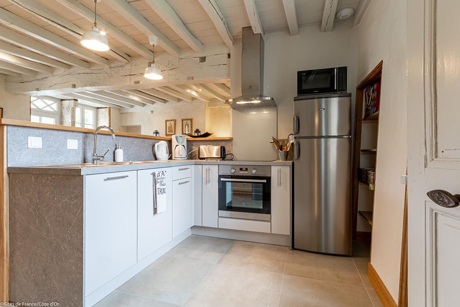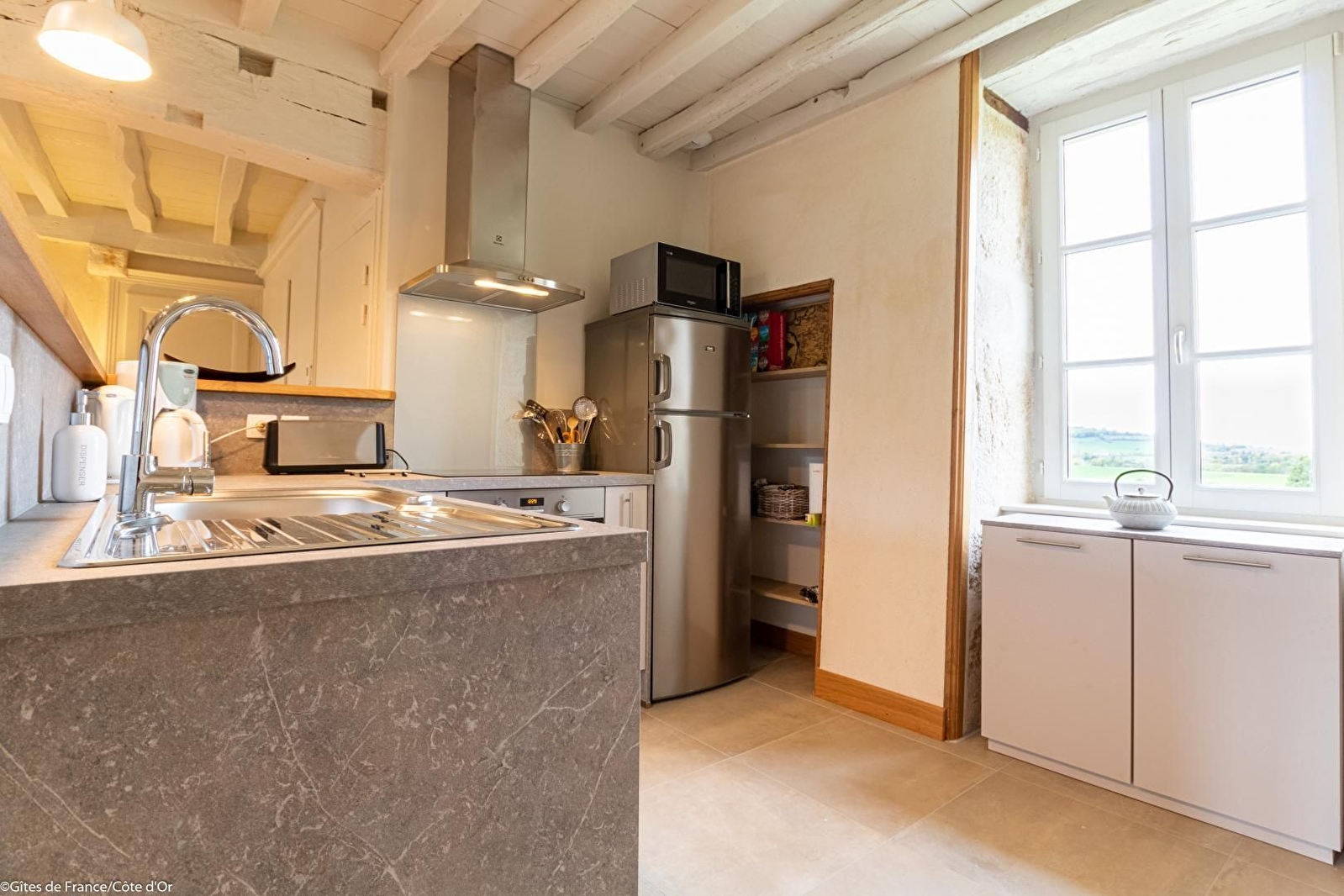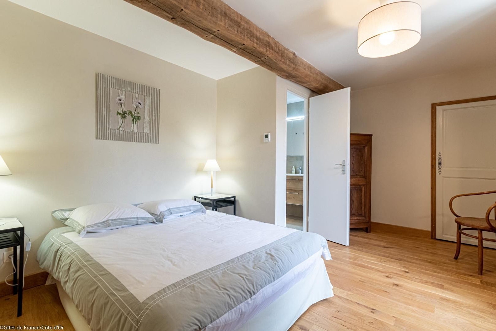 Au coeur de la campagne bourguignonne, l'ancienne ferme du château du 19ème siècle, rénovée, complètement indépendante, vous accueille pour un séjour reposant en famille ou entre amis. Rez-de-chaussée surélevé avec jolie vue sur la nature environnante : beau séjour avec espaces salon avec poêle à granulés, salle à manger et cuisine équipée. 2 chambres avec parquet : l'une avec un lit 160 et l'autre avec 2 lits 90 jumelages. Elles ont chacune un accès indépendant et communiquent également par la salle d'eau, centrale aux 2 chambres. WC séparé avec lavabo et machine à laver.