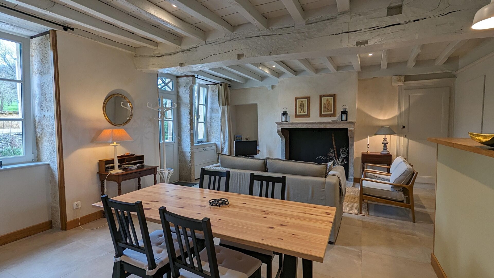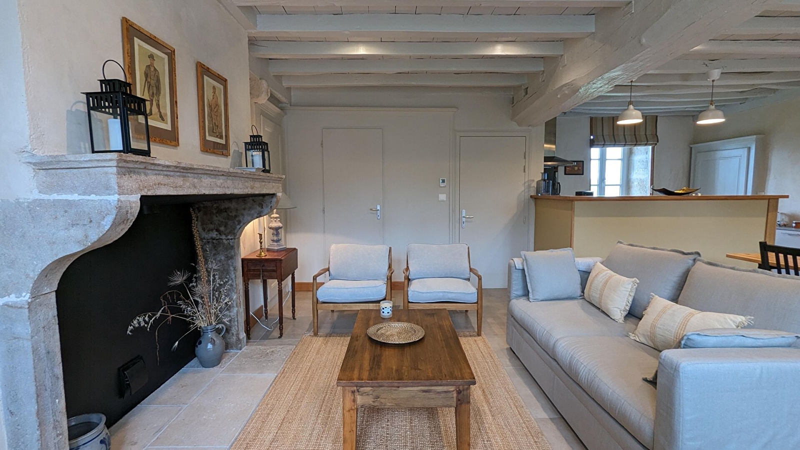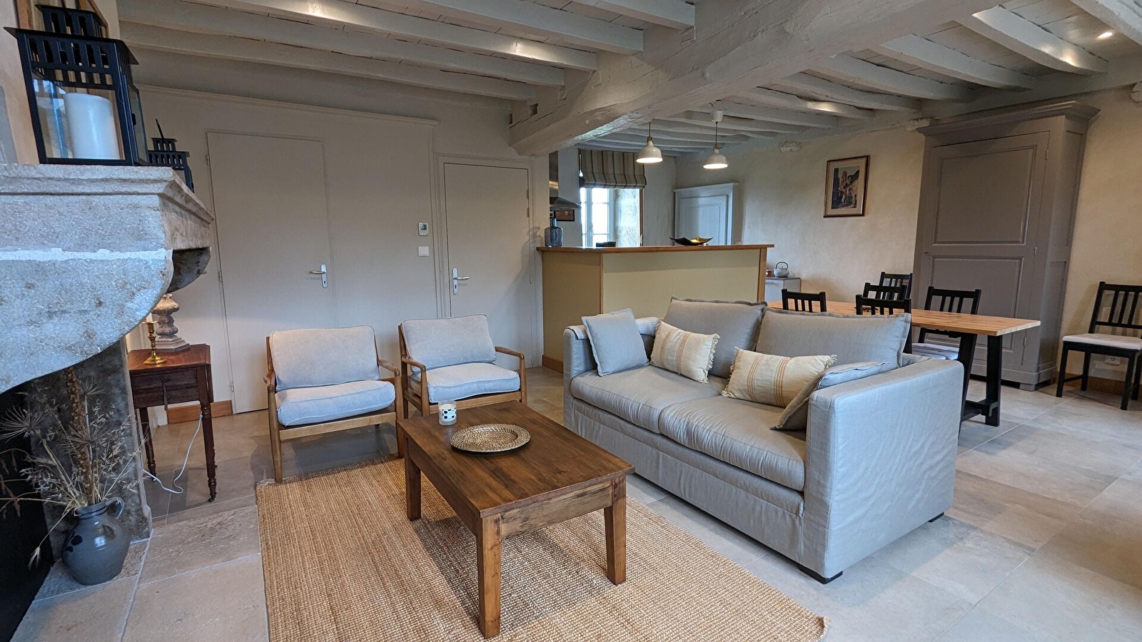 Au coeur de la campagne bourguignonne, l'ancienne ferme du château du 19ème siècle, rénovée, complètement indépendante, vous accueille pour un séjour reposant en famille ou entre amis. Rez-de-chaussée surélevé avec jolie vue sur la nature environnante : beau séjour avec espaces salon avec poêle à granulés, salle à manger et cuisine équipée. 2 chambres avec parquet : l'une avec un lit 160 et l'autre avec 2 lits 90 jumelages. Elles ont chacune un accès indépendant et communiquent également par la salle d'eau, centrale aux 2 chambres. WC séparé avec lavabo et machine à laver.