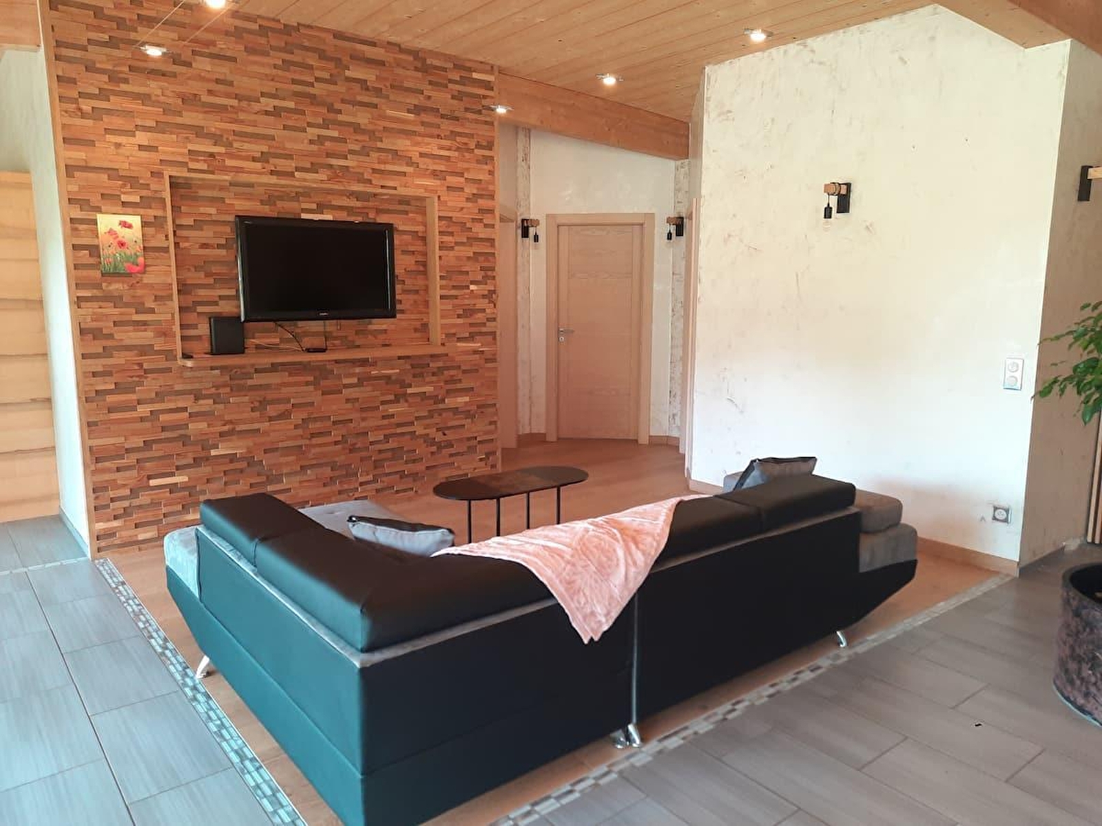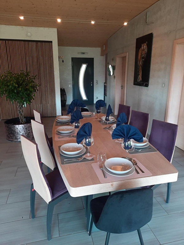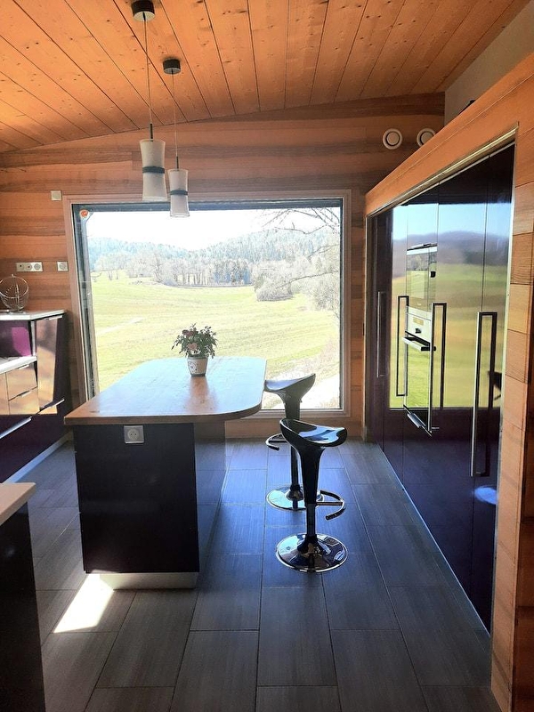 Le petit coin de Paradis vous accueille pour des vacances calmes et sereines au coeur de la nature dans le parc naturel du Haut-Jura. Notre région offre un paysage charmant à chaque saison. Venez parcourir les sentiers entre lacs, cascades, belvédères à pied ou en VTT, dont certains sont au départ du gîte. De magnifiques pistes de ski nordiques à proximité traversant la forêt jurassienne, ainsi que plusieurs sites de stations familiales de ski alpins et dee jolis villes/villages à découvrir. Maison individuelle contemporaine très lumineuse composée de: - une cuisine équipée de lave vaisselle, four, micro-onde, plaque induction frigidaire intégré, cafetière et tous les ustensiles nécessaires pour cuisiner où vous aurez de grandes probabilités d'admirer la faune sauvage ainsi que la salle à manger / salon Télévision à disposition - salle de bain spacieuse avec douche a l italienne et baignoire d'angle et 1 lingerie avec machine à laver et sèche linge a disposition - 1 chambre lit 2 places 260×200 et une chambre 2 lits 1 personne 90×200 pouvant se transformer en lit 2 personnes king site 180×200 - 1 suite familiale ( 1 lit 160×200 et 1 lit superposé 90×190 sachant que le lit a étage peut accueillir une personne de plus de 6 ans avec un poids max de 90 kg) avec salle de bain comprenant 1 douche et 1 wc séparé. Vous disposerez d'une terrasse couvertes pour profitez de vos longues et belles soirées ainsi qu'un jaccuzzi 6 places intégrés à la terrasse. attention: entre 2 locations il est possible que nous devions changer l eau du jaccuzzi, à savoir qu il faut 24h pour qu il retrouve une température à 37° Une belle aire de jeux privée fera le bonheur de vos enfants. Une borne électrique pourra être mise a disposition en option. Pas de bruits en extérieur à partir de 22h pour le respect du voisinage, la maison est située dans un endroit calme et paisible, est doit être respecté pour le bien de tous.