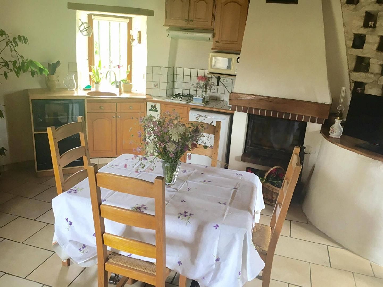 Gîte dans un ancien pigeonnier dominant le village. Rez de chaussée: Séjour avec cheminée/cuisine. 1er étage: 1 chambre avec un lit 2 personnes : 140x190, et un lit 1 personne : 90x190. Salle d'eau. WC.