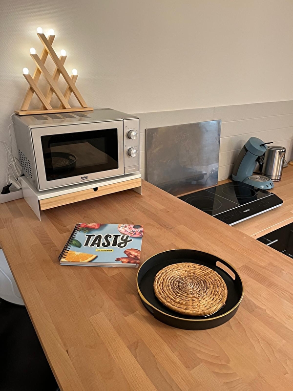 Le logement dispose d'un coin salon avec canapé convertible et d'un espace de repas avec une cuisine semi équipée, dotés d'équipements tels que cafetière, bouilloire, micro onde, plaques de cuisson, frigo, télévision écran plat, garantissant un séjour plus agréable. Ce bien offre 1 chambre à coucher avec un lit en 140 et une commode de rangement. Vous disposerez d'une salle de bain avec baignoire et toilettes Un sèche-cheveux sera mis à disposition.