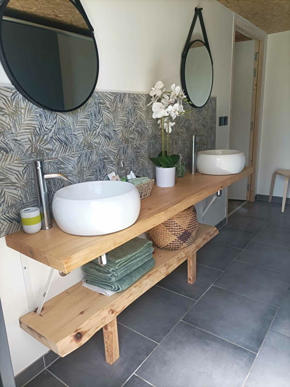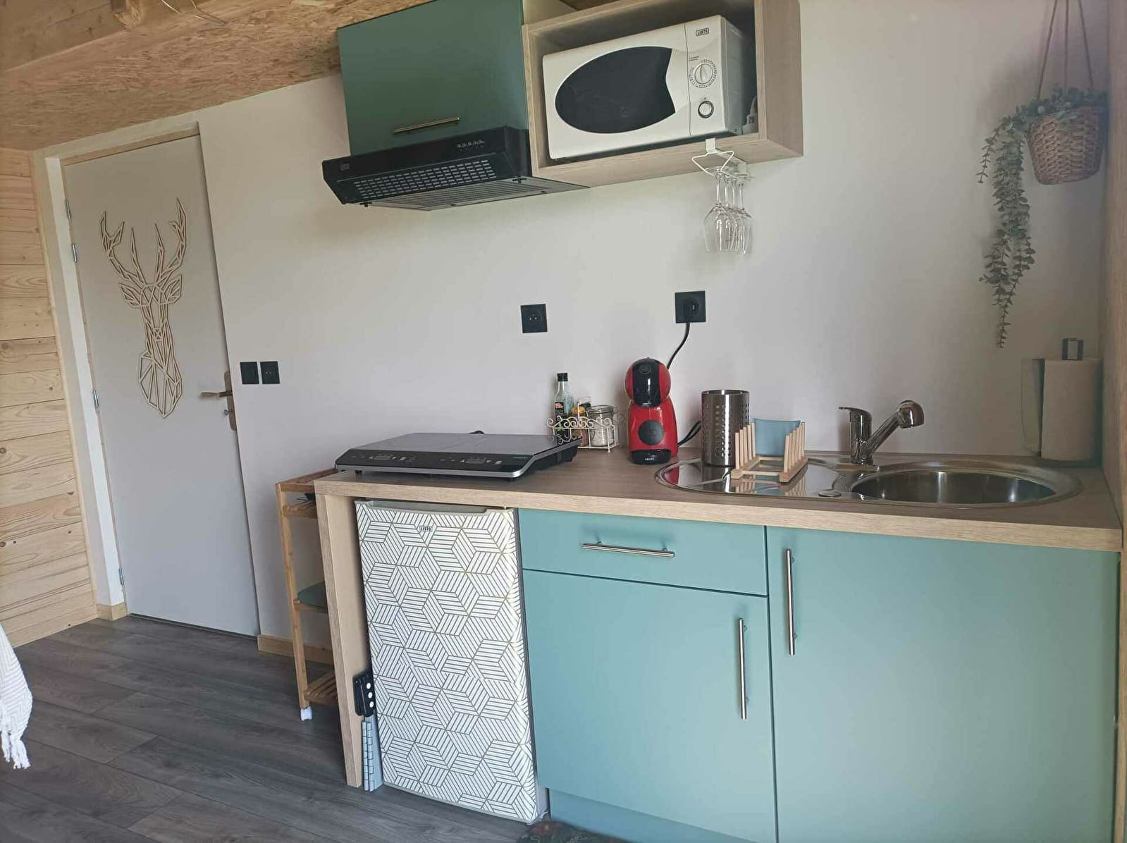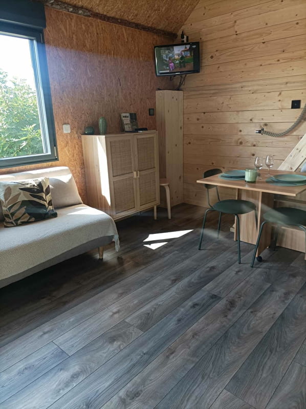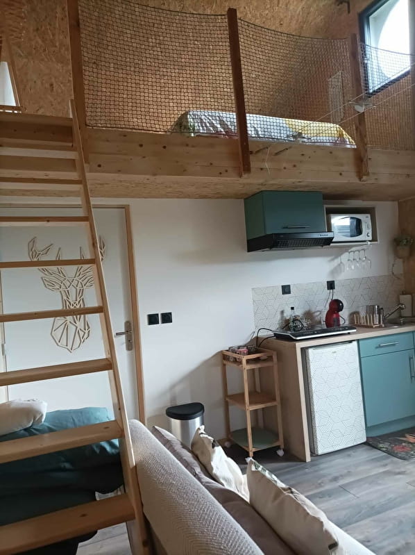 Conçue pour votre confort et bien-être. L'intérieur est en bois et OSB , dans un style cabane ou atelier, nous privilégions le style épuré et brut .