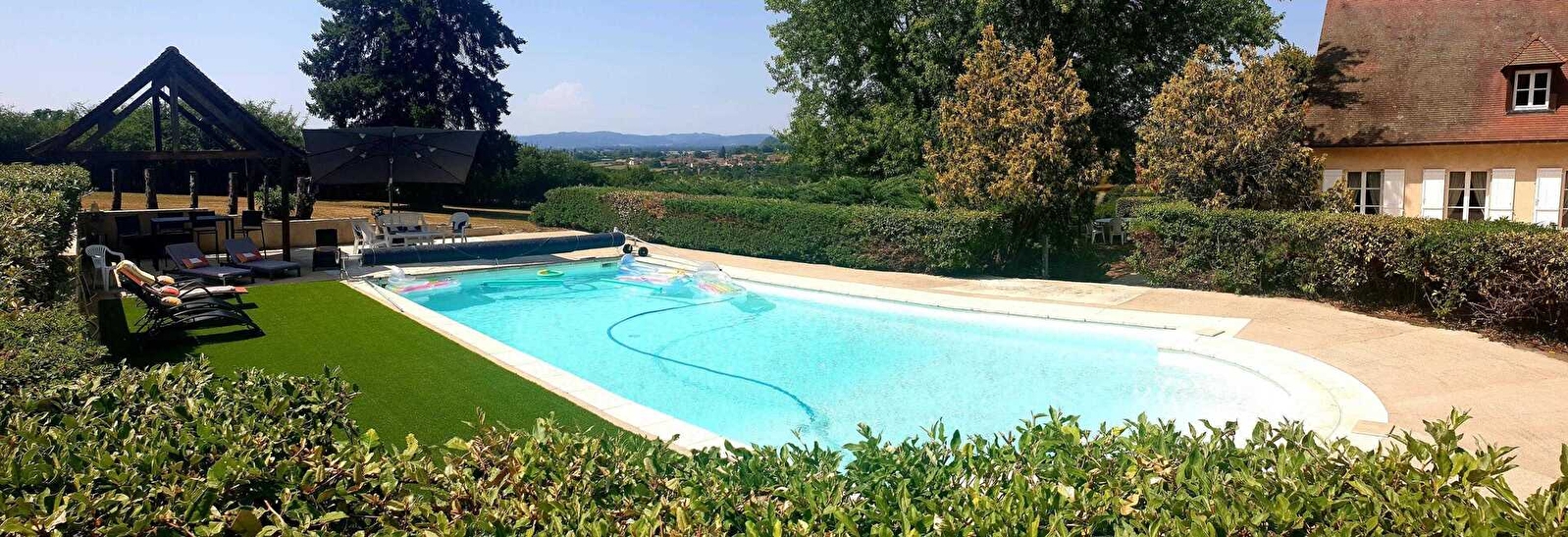 Golfeurs passionnés, Virginie & Jean-Marc vous accueillent dans un élégant pavillon "eighties", niché au calme au sein d'un paisible mini hameau résidentiel sis en impasse à 600m du golf, sur une propriété de 8 ha (très largement "naturelle"). Totale tranquillité en pleine campagne, blotti à flanc de coteau sur un intimiste parc paysagé ultra soigné de 10000m² comprenant une rare piscine chauffée de 14x6m (douche & large terrasse en partie abritée), au cœur d'une clairière ouverte sur un bucolique plateau de prairies bocagères accueillant des chevaux en saison. Littéral havre de paix & repos lové à l'abri des regards au creux d'un magnifique écrin de nature & verdure (possibilité d'observer la faune sauvage sur place : chevreuils, renards, blaireaux…), à deux pas de la vaste forêt sauvage de Planoise (véritable "poumon vert" des contreforts sud du massif du Morvan), du plan d'eau du Vallon (100 ha de "sport nature" avec base nautique), des riches équipements de loisirs comme du centre-ville. Située dans un cadre préservé de toute beauté, cette cité doublement millénaire labellisée "Ville d'Art & d'Histoire" dispose d'un patrimoine unique (gallo-romain, médiéval & classique) & propose toutes les commodités. Gîte de bon confort. Chaleureux cachet campagnard contemporain. Large terrasse exposée (avec espace détente "outdoor") & agréable jardinet dotés d'une belle vue dégagée sur la douce campagne environnante et les monts du Morvan, dont le Mont Beuvray & le Haut-Folin en toile de fond. Superbe panorama & paysages.