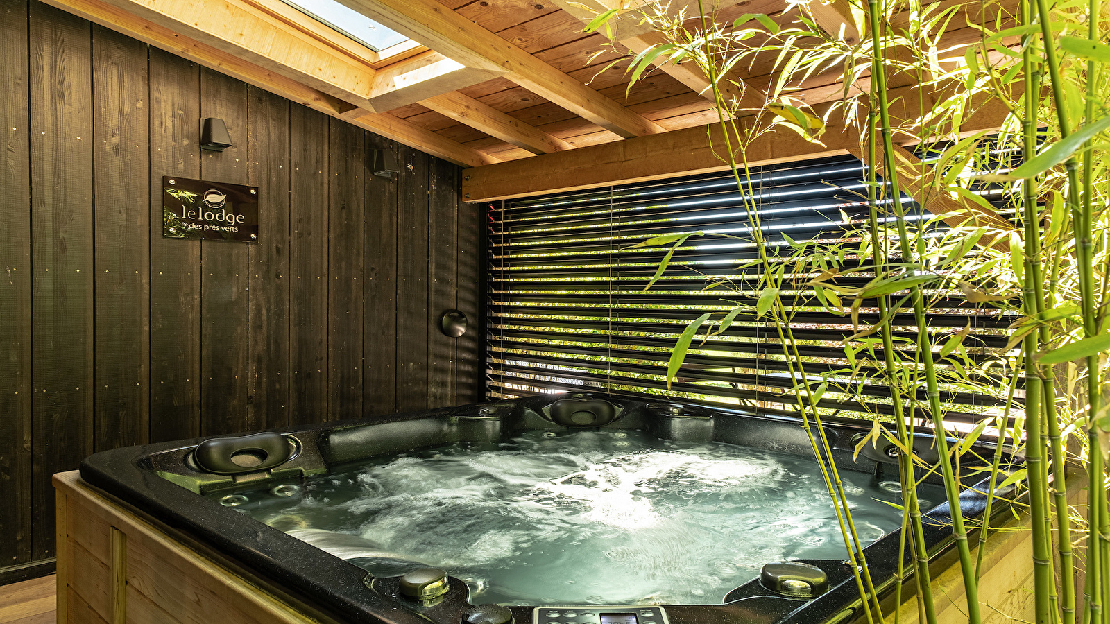 Le Lodge est une chambre de luxe à l’ambiance zen et chic. Sa structure bois et les éléments naturels qui la composent évoquent parfaitement l’esprit du Domaine. Située à quelques pas du Logis, à l’abri des regards, elle bénéficie du plus grand calme. Ses deux terrasses et son Jacuzzi privatif abrité, chauffé toute l’année, vous apporteront une ouverture sur l’extérieur discrète et une sensation d’espace intime.