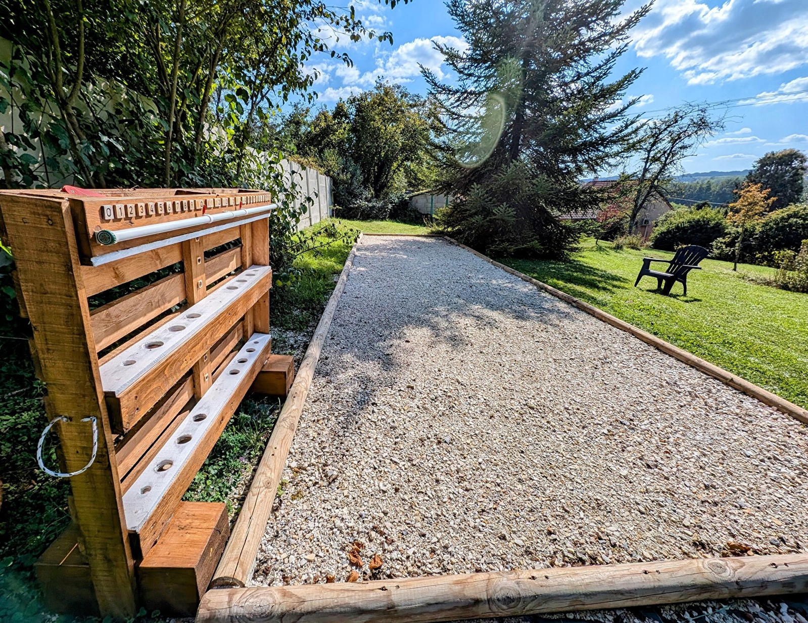 À l’extérieur, vous trouverez un grand jardin verdoyant où vous pourrez profiter du calme environnant, ainsi qu’un terrain de pétanque, parfait pour des après-midis de détente en plein air.