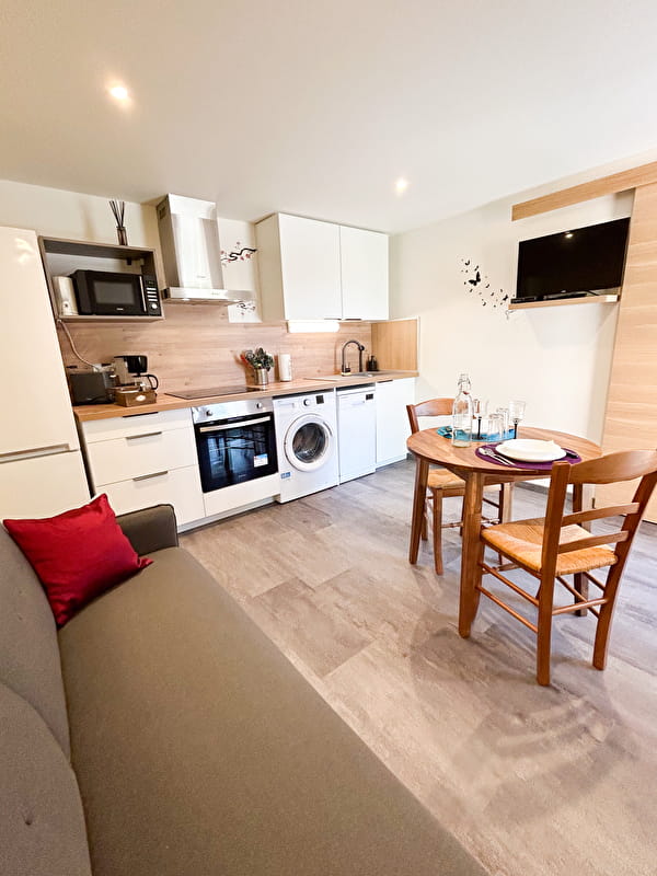 L’appartement se compose d'une chambre, d'un salon/coin repas comprenant une cuisine équipée, un lave-linge, un lave-vaisselle, un canapé lit et une TV. La salle de bain privative possède un sauna qui vous permettra de vous relaxer et de profiter pleinement de votre séjour.