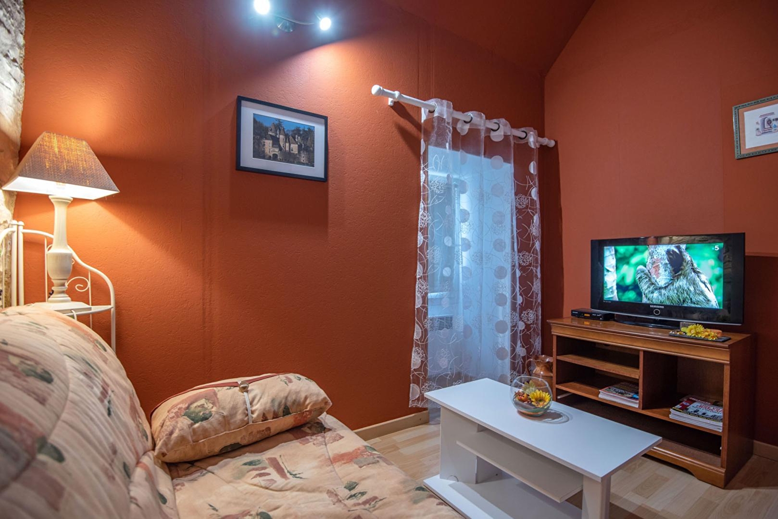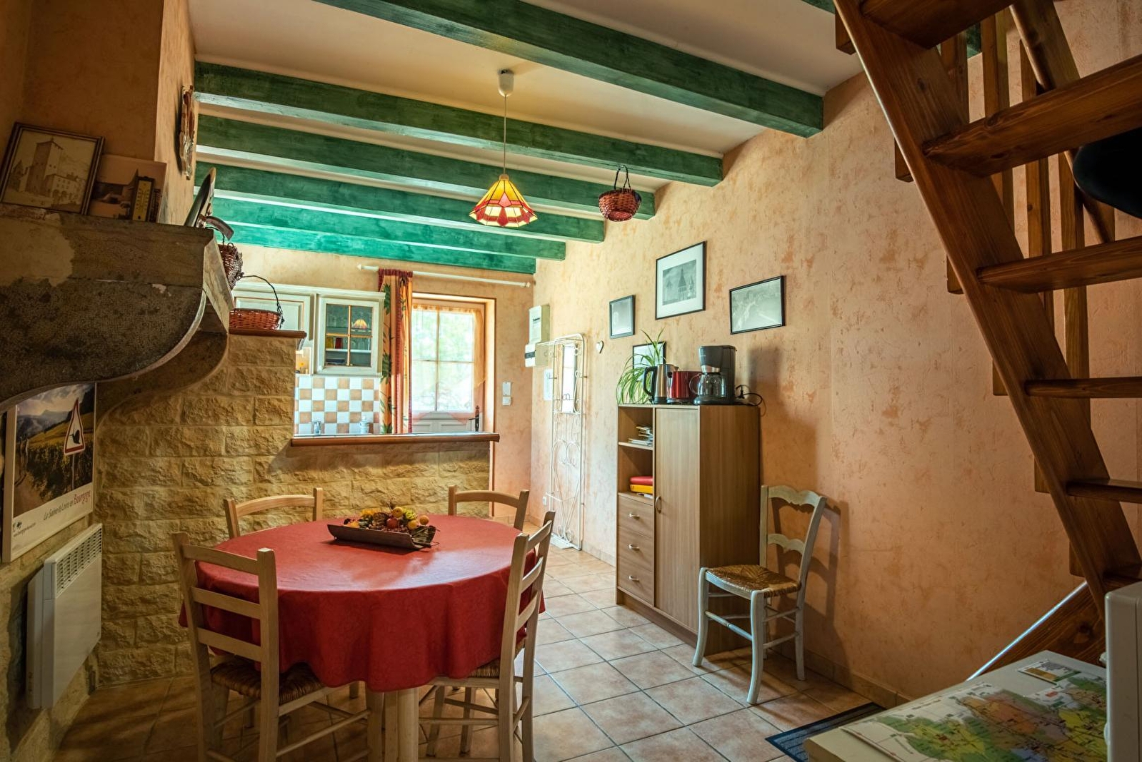 Composition : Maison de village mitoyenne voisinant l’habitation des propriétaires (totale indépendance). Wifi (fibre). Chauffage électrique. Rdc surélevé (7 marches / accès par escalier extérieur) : cuisine-séjour, salon de détente (en rdc / demi étage inférieur), salle d’eau (douche + WC), 1 chambre (lit 2 p. 140x190cm). 1er étage : Salon TV sur mezzanine, 1 chambre (1 lit 2 p. 140x190cm). Buanderie dans local mitoyen (accès par l’extérieur). Terrasse + balconnet abrité + parking privés. Local vélos. Cour en commun (terrain clos). Commerces à 4 km. Supermarché 10 km.