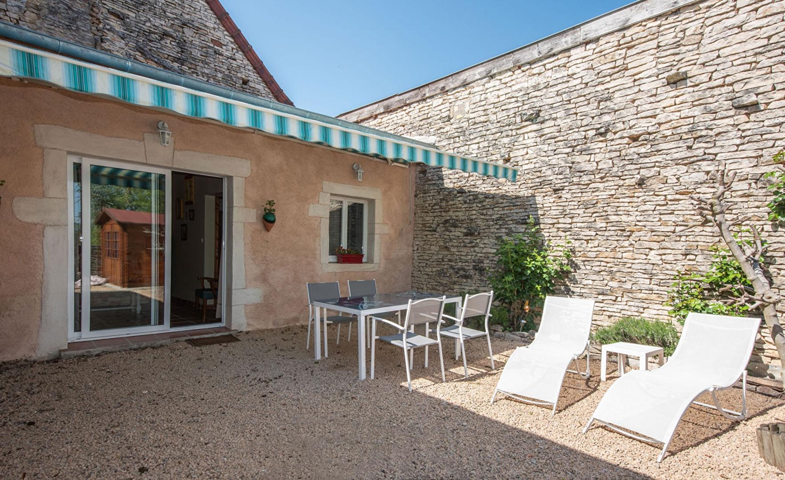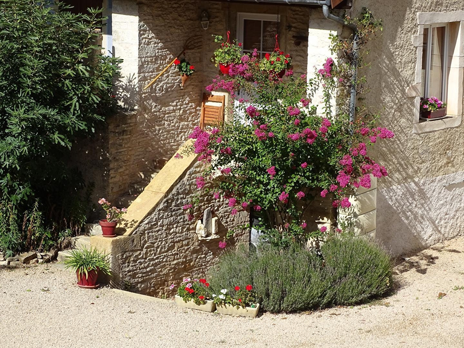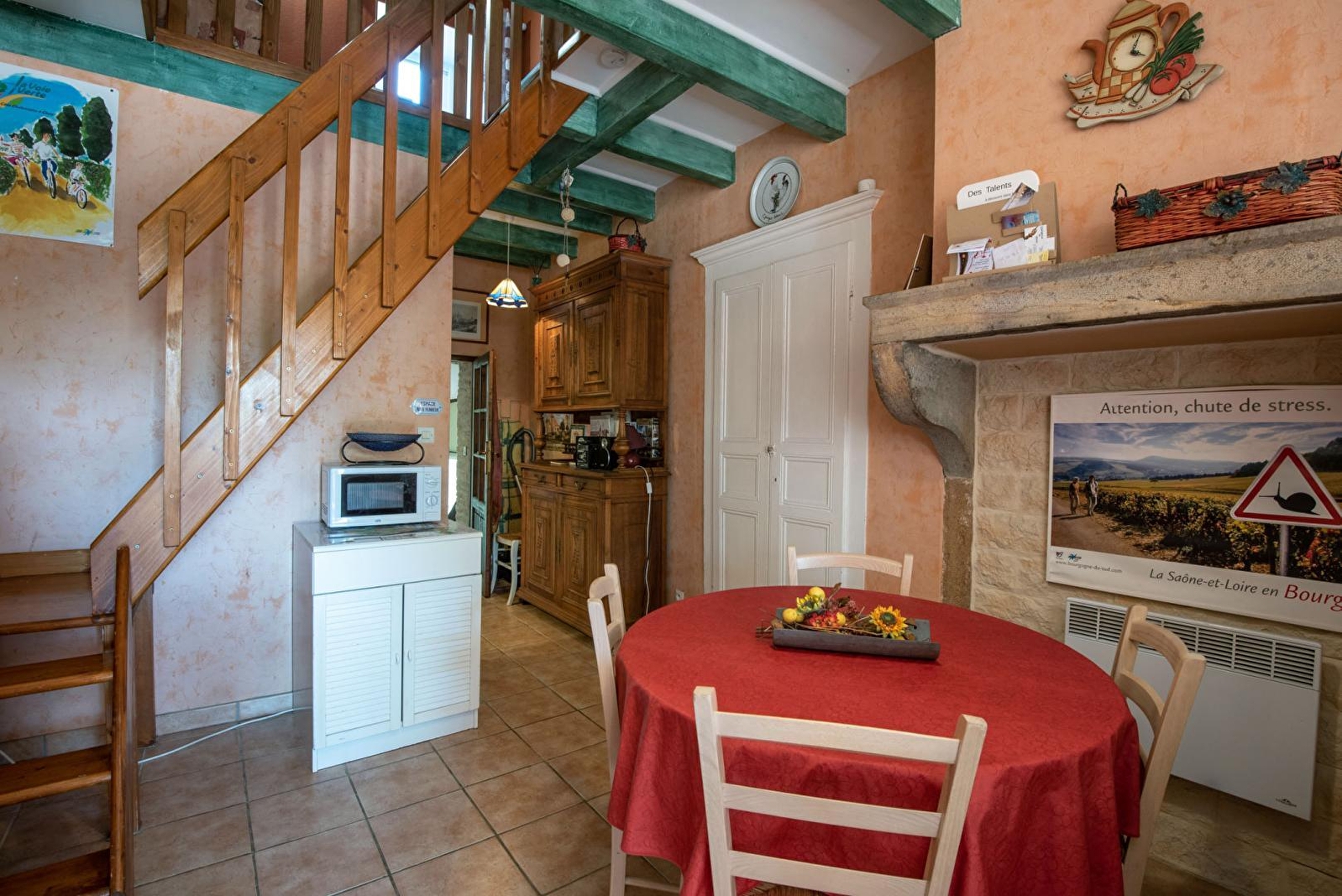 Charmante authentique demeure de pays du XVIIe pétrie d’histoire & intégralement réhabilitée, agrémentée d’une "galerie mâconnaise" traditionnelle (balcon abrité), sise en bordure de ruelle sur une propriété close de 900m² soigneusement entretenue, végétalisée & fleurie (abritant l’habitation des propriétaires), dotée d’une grande cour en gravier (littéral terrain de pétanque "naturel"), d’un jardin aromatique (cueillette possible) & d’un mini poulailler. Au sein d’un petit hameau rural & agricole typique de la campagne Clunysoise, jouxtant le cœur du pittoresque village sauvegardé de Cortevaix, riche de belles bâtisses historiques restaurées avec soins. Apaisant cadre paysagé vallonné alentours, conjuguant prairies bocagères, vignobles & forêts, niché au creux de la verdoyante vallée de la Guye (& sa rivière poissonneuse), au pied d'une douce montagne abritant un vaste massif forestier sauvage doté d'un "belvédère panoramique" en son sommet, ainsi qu’un "rare" biotope protégé en ZNIEFF pour sa richesse faunistique & floristique. Spacieux gîte de bon confort. Beaux volumes. Chaleureux cachet campagnard, sublimé par l’âme 100% dépaysante des lieux (conservation des riches traces du bâti d’origine : manteau de cheminée, murs & linteaux de fenêtre en pierre, poutres…). Beaucoup de charme & caractère. Agréable vaste terrasse intimiste en gravier, lovée à l’arrière du gîte (avec table de ping-pong).