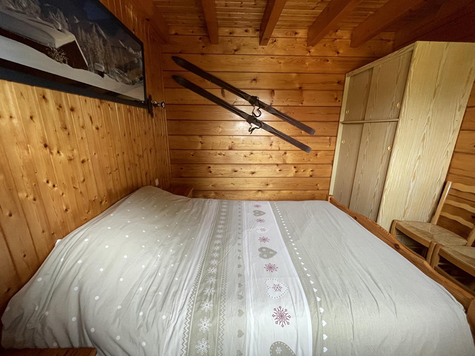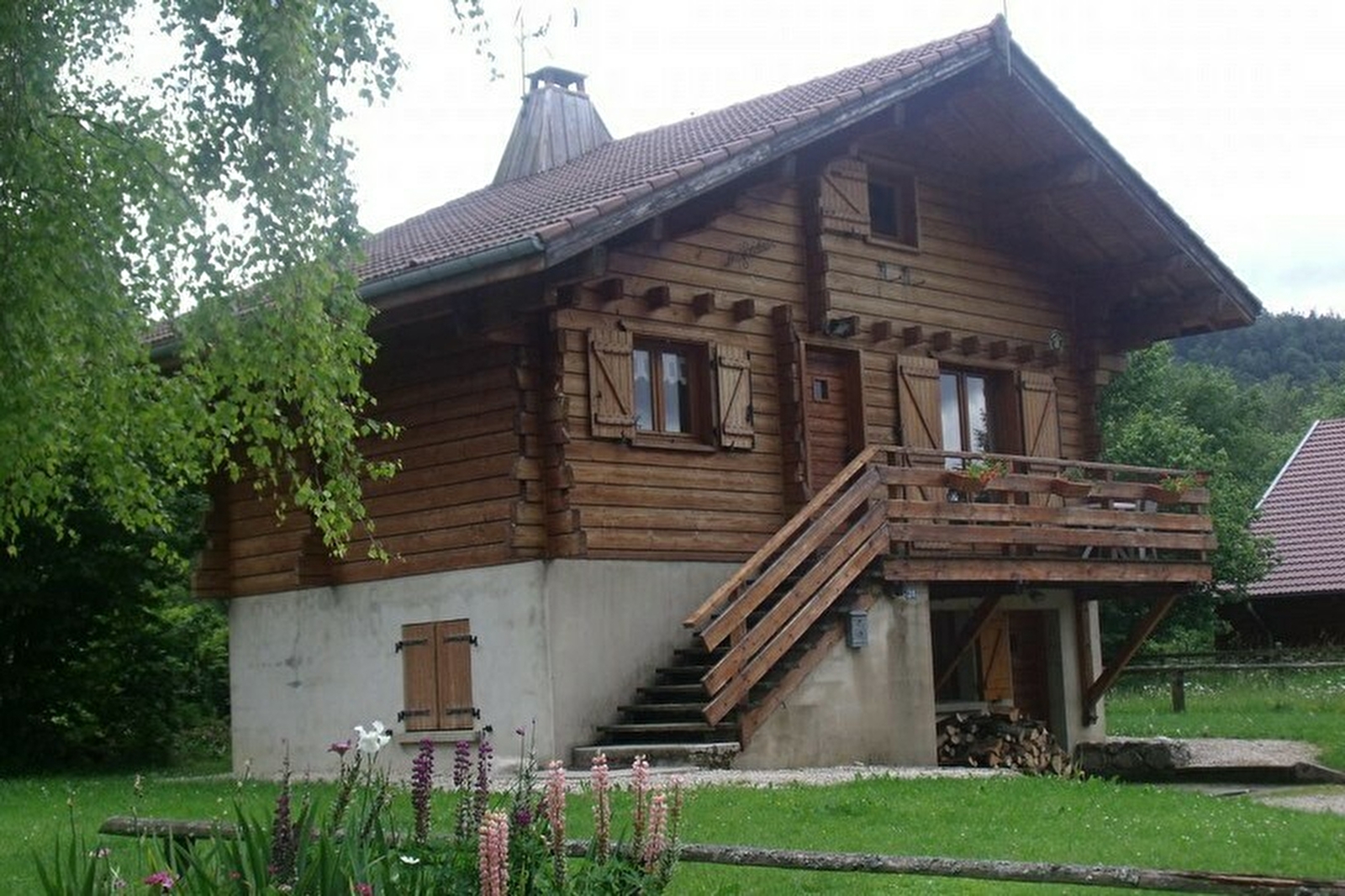 Chalet indépendant avec au 1er étage: séjour et coin cuisine avec poêle à bois et TV écran plat, ch1: 1 lit 2 pl, salle d'eau avec WC. Au 2ème étage: wc, ch2: 1 lit 2 pl, 3 lits 1 pl. Cour et petit terrain privés non clos, balcon, salon de jardin, barbecue. Chauffage électrique et bois. Le propriétaire se fera un plaisir de vous faire visiter sa ferme en activité à 4 km. Parking privé sur place et volets dans les chambres. Attention : ne pas suivre les indications du GPS en hiver car petites routes non déneigées