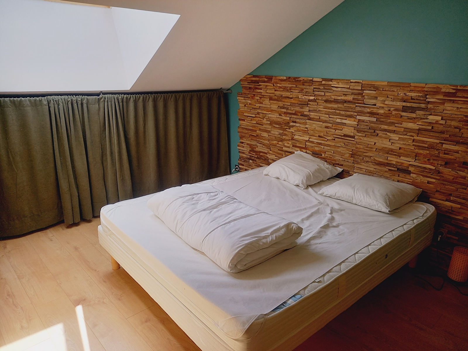 En duplex une chambre avec un lit de 160cm et placard et une salle d'eau et WC séparées.