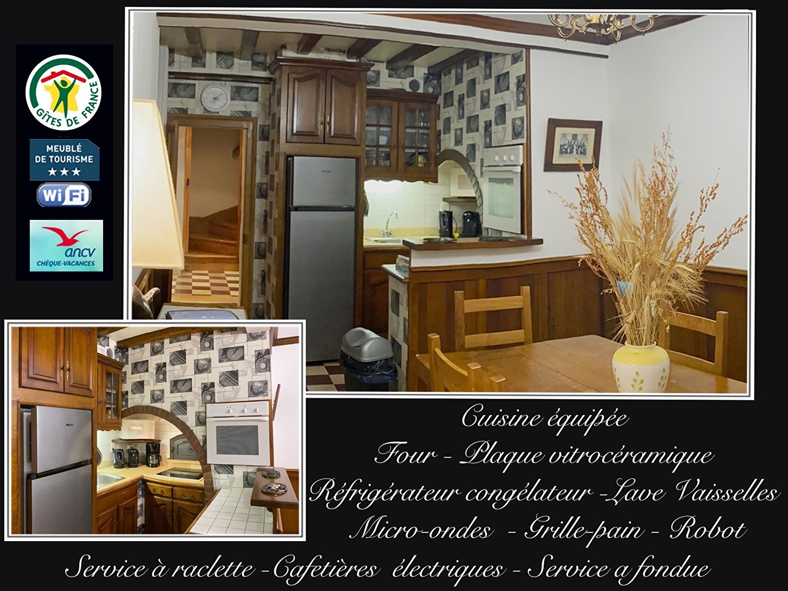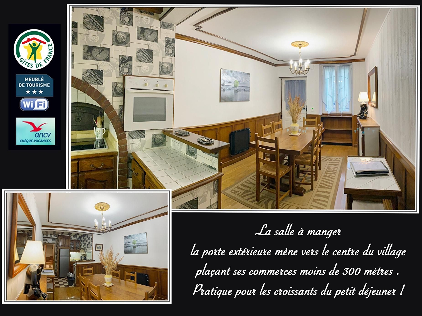 LE GÎTE: Au rez-de-chaussée: Cuisine équipée ouverte sur la salle à manger. Le salon-séjour avec lits gigognes (* ensemble composé de 2 vrais lits de 90), les w.c. indépendants et une buanderie avec lave-linge et sèche-linge. À l'étage: 2 chambres attenantes, une avec 1 lit double et une armoire coulissante, l'autre chambre avec lits gigognes et une armoire coulissante, salle de bain avec baignoire. Équipement bébé complet. Accès Internet Wifi. À l'extérieur et sous abri une table de ping-pong et un terrain de pétanque. Attenant au gîte, un ancien atelier de menuiserie, gardant quelques traces de son passé, il est devenu un grand espace mis exclusivement à votre disposition avec des jeux et activités manuelles pour petits et grands. Le jardin de 170 m2 est clos avec tonnelle, table et fauteuils de jardin, bain de soleil et transats, barbecue et une place pour garer une voiture. Le gîte dispose de 2 entrées, l'une vers le centre du village d'Ancy-le-Franc plaçant ses commerces à moins de 5 minutes, l'autre qui est aussi l'accès principal (voiture) mène vers la campagne. À 150 mètres, un sentier propose une promenade sur les hauteurs dominant le village et la vallée qui peut être prolongée par une boucle empruntant le chemin de halage du canal de Bourgogne.