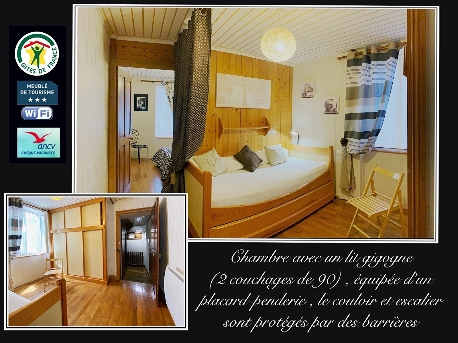 Possible dépassement de capacité 2 personnes avec supplément 10€/jour (2 lits Gigogne de 90).