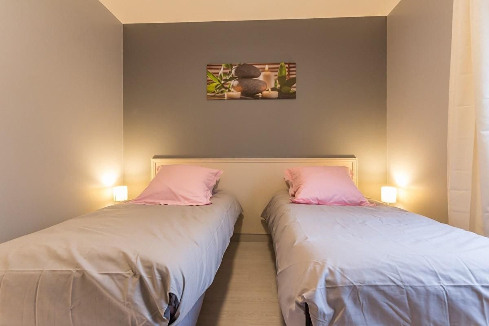 1 chambre avec un lit 160x200 et 1 chambre avec 2 lits 80x200 jumelables. Salle d'eau avec douche à l'italienne. WC séparé.