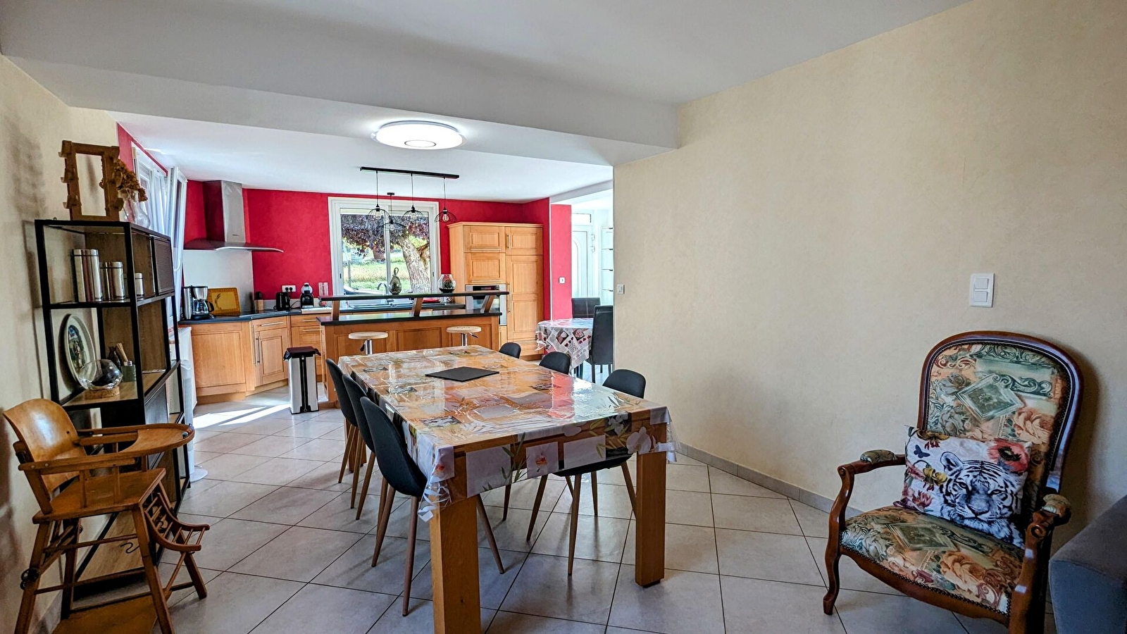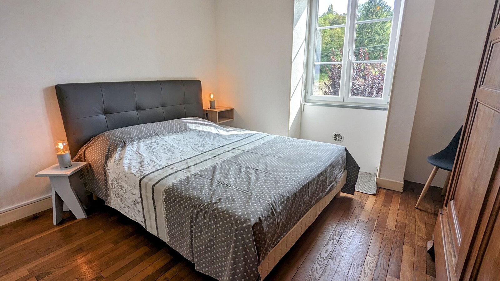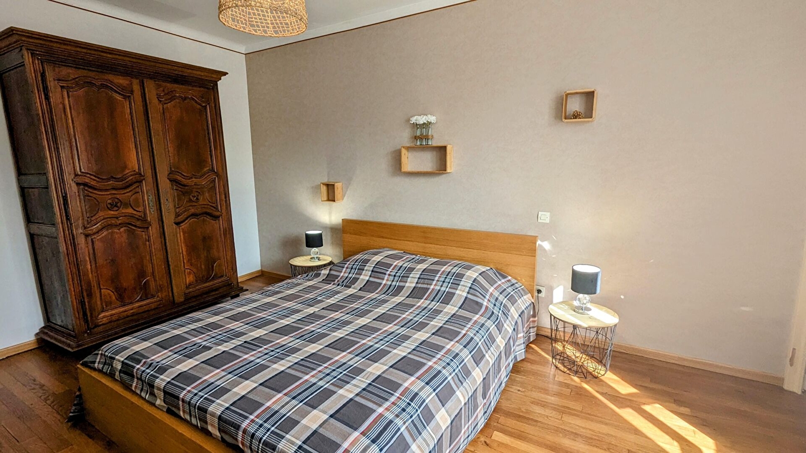 A l'étage : 1 chambre avec 1 lit de 140 cm et 2 chambres avec chacune 1 lit de 160 cm. Lit parapluie, chaise haute, baignoire bébé. Sèche-linge privatif à disposition (au sous-sol de la maison).