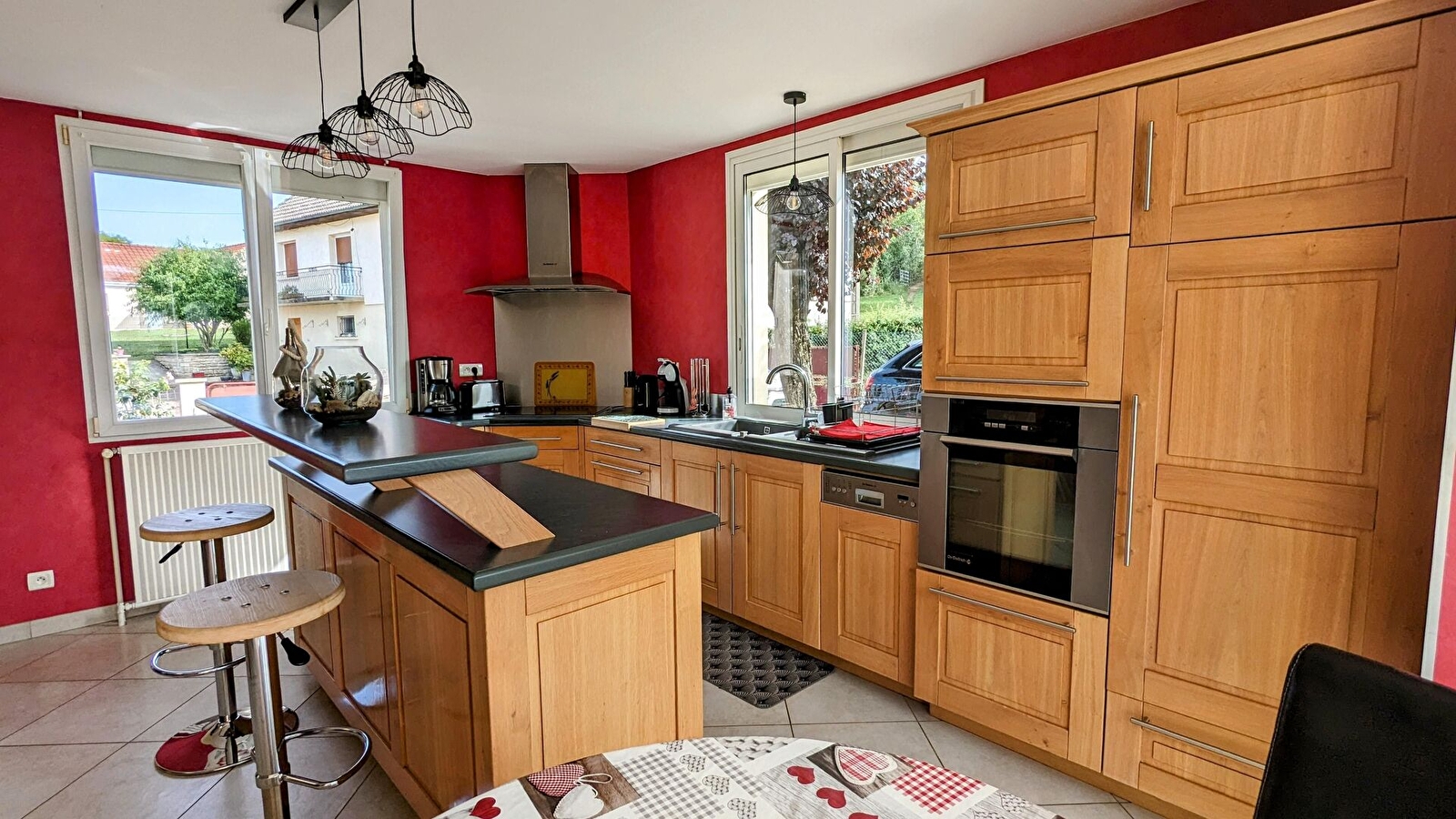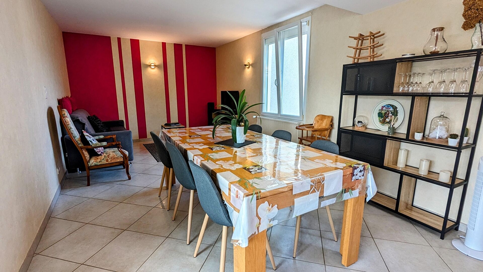 En sortie de village, dans un quartier calme, le gîte de Grand-père Bicyclette, grande maison familiale lumineuse et confortable, vous offre, au rez-de-chaussée : cuisine équipée ouverte sur salle à manger/salon avec canapé convertible, TV, WIFI, enceine bluetooth. Cheminée éthanol. Salle de bain avec baignoire d'angle, WC indépendant.