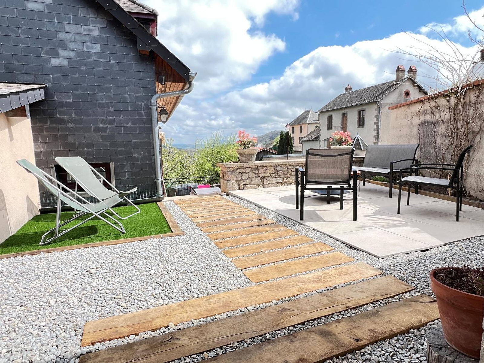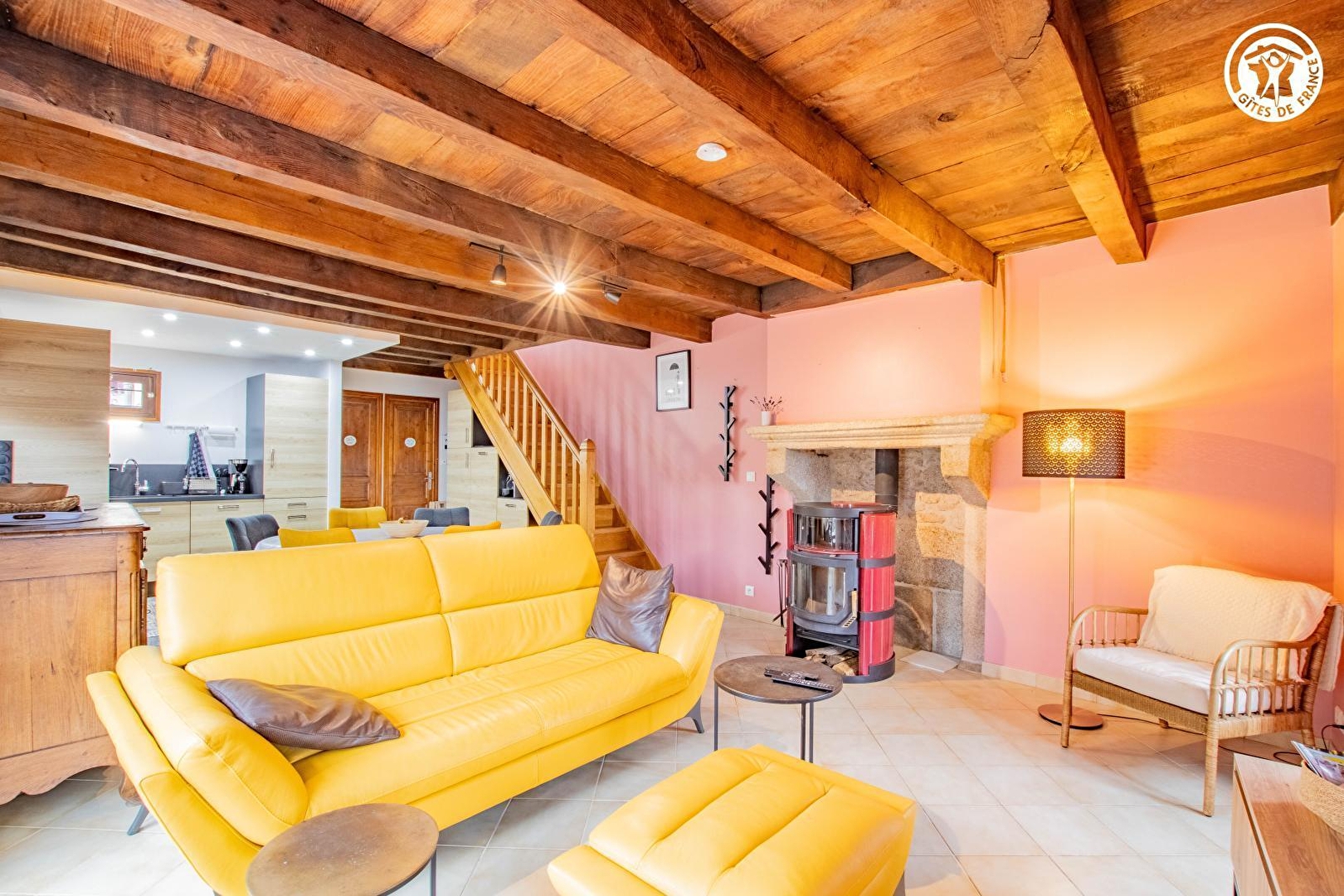 Composition : Maison individuelle avec dépendance. Gîte sur 2 niveaux (accès par escalier extérieur). Wifi (fibre). Chauffage électrique + poêle à bois. 1er étage : séjour-cuisine-salon, salle d'eau (douche), Wc indépendant. 2ème étage : 3 chambres (lit 2 p. 160x200cm / 4 lits 1 p. 80x190cm en 2 x 2 gigognes) dont 1 indépendante en annexe avec accès par l'extérieur (lit 2 p. 160x200cm) avec salle d'eau privative (douche/Wc). Jardin clos (100m²) + balcon-terrasse + terrasse + parking (1 place) privatifs. Parking public aisé gratuit sur place. Commodités dont supermarché à 11 km.
