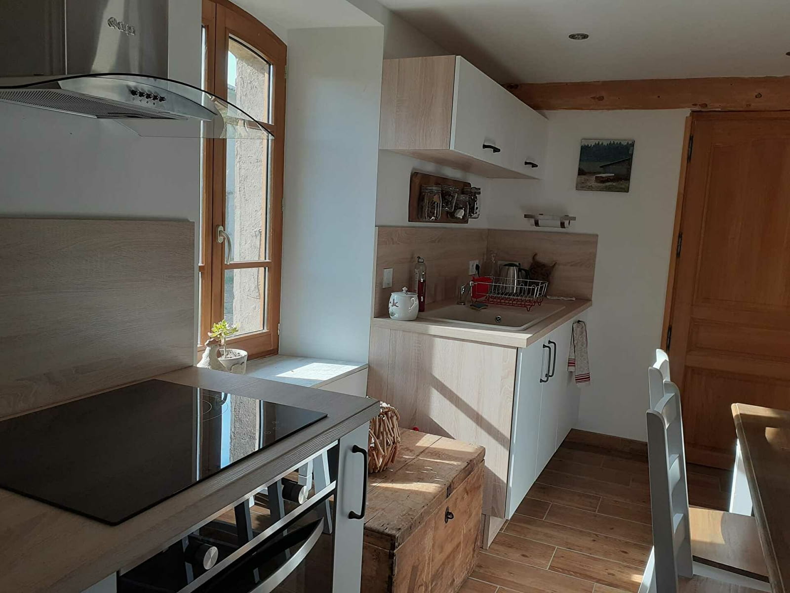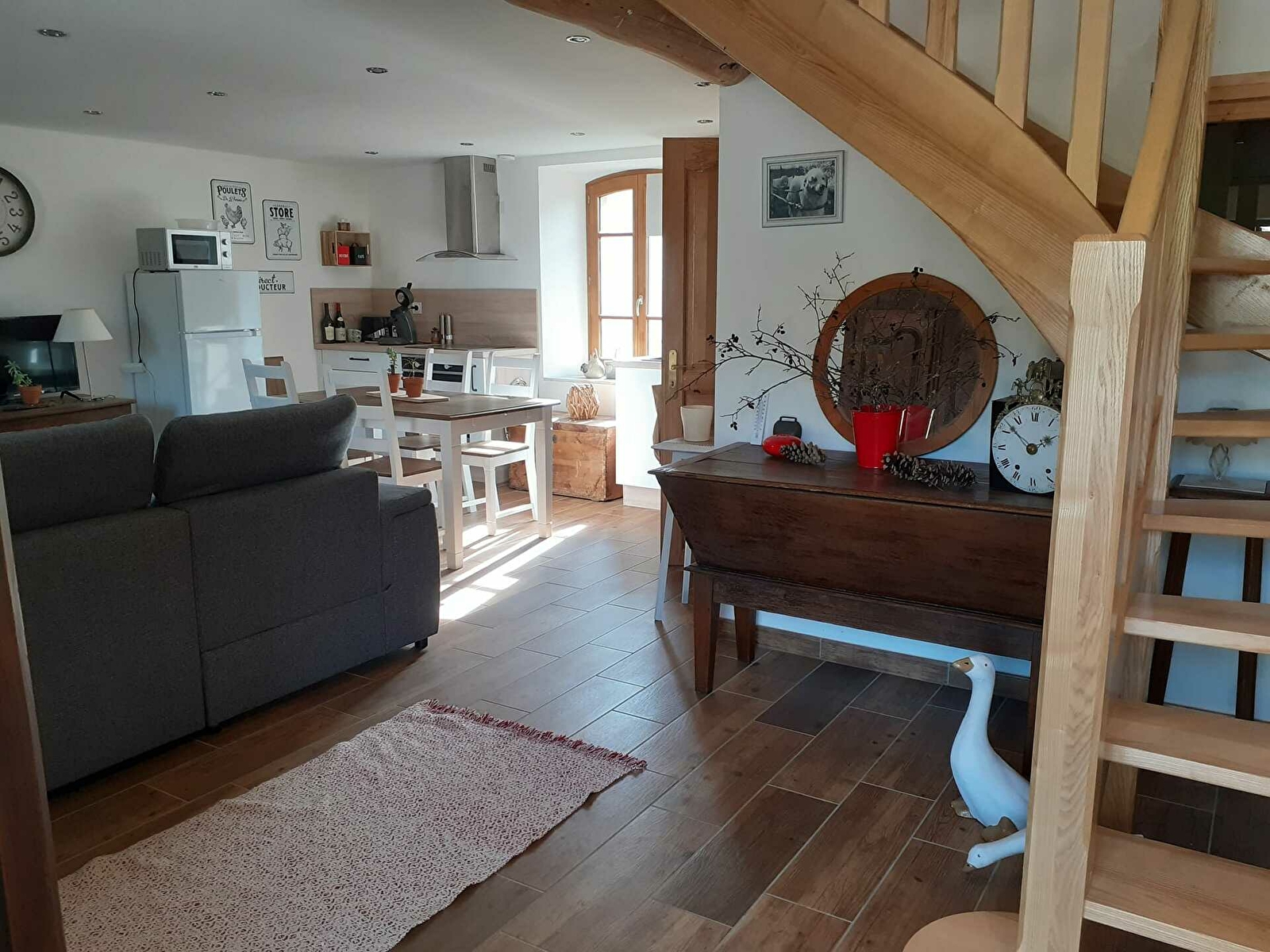 Il comprend en rez-de-chaussée une agréable pièce de vie avec un poêle à bois, une cuisine bien équipée ainsi qu'une salle d'eau.