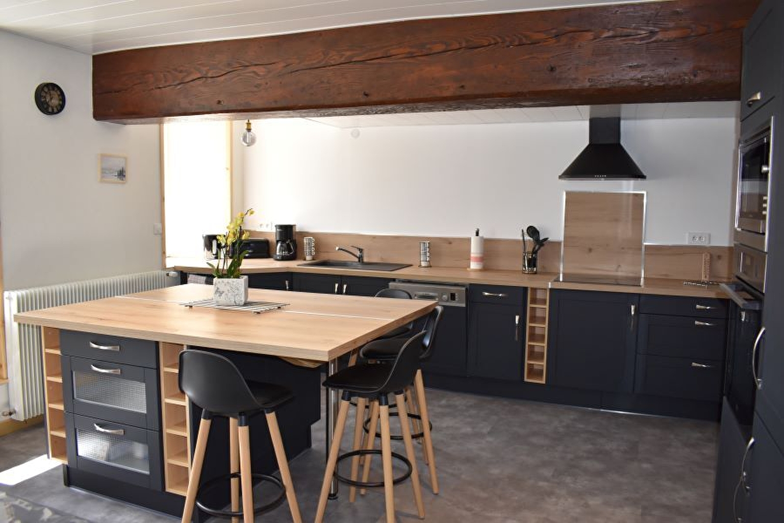 Situé au bord de la départementale menant à Champagnole et Pontarlier à 836 mètres d'altitude, dans une grande maison comtoise mitoyenne à celle des propriétaires, ce gîte spacieux (170 m²) a été entièrement rénové pour vous offrir un maximum de confort. Il se compose au RDC d'une cuisine intégrée toute équipée, d'un salon avec TV et cheminée, d'une buanderie, d'un WC indépendant, d'une suite parentale avec 1 grand lit et sa salle d'eau avec douche et WC indépendant. A l'étage : une chambre avec un grand lit, une chambre avec 4 lits simples, une salle d'eau avec douche et un WC indépendant. Pour votre plus grand confort, les lits seront faits à votre arrivée. Côté extérieur : grand parc de 600 m² avec salon de jardin, transats et barbecue. Garage fermé, baby-foot, pétanque. Ce gîte étant situé sur une exploitation agricole, il est possible sur RDV de visiter la ferme. Idéalement situé pour les amateurs de randonnées (forêt de la Joux avec sapins et épicéas), la pratique du ski, du vélo, la baignade ou encore la pêche. Nombreux lacs, cascades, points de vue et patrimoine à proximité : source bleue, cascades du Hérisson, gorges de la Langouette, cité médiévale de Nozeroy, vignoble Jurassien de Baume les Messieurs et Chateau-Chalon. Vous pourrez également vous rendre en Suisse en moins d'une heure. Sans oublier bien sûr prendre le temps de déguster nos produits régionaux : comté, Morbier, Mont d'Or, saucisse de Morteau, Pontarlier, Absinthe... Note : petit animal accepté sur demande auprès des propriétaires et un panier de bois offert par séjour Possibilité de louer le gîte pour 2, 4 ou 6 personnes hors saison à un tarif préférentiel sur demande auprès des propriétaires. Parking privé sur place.
