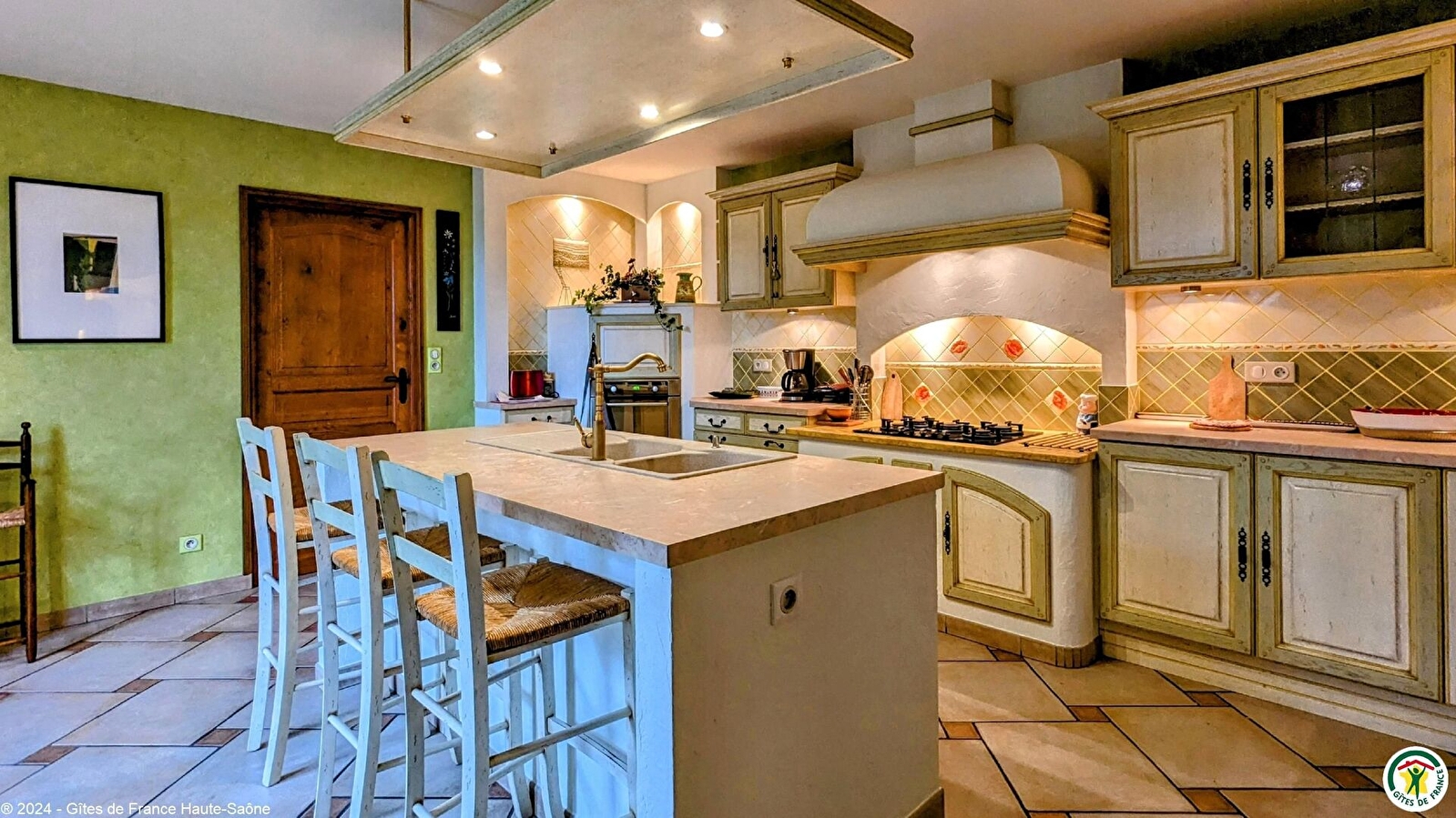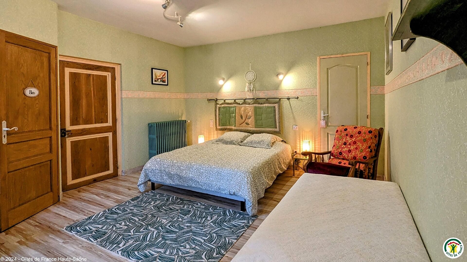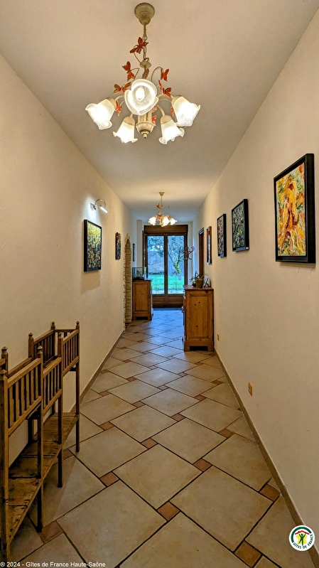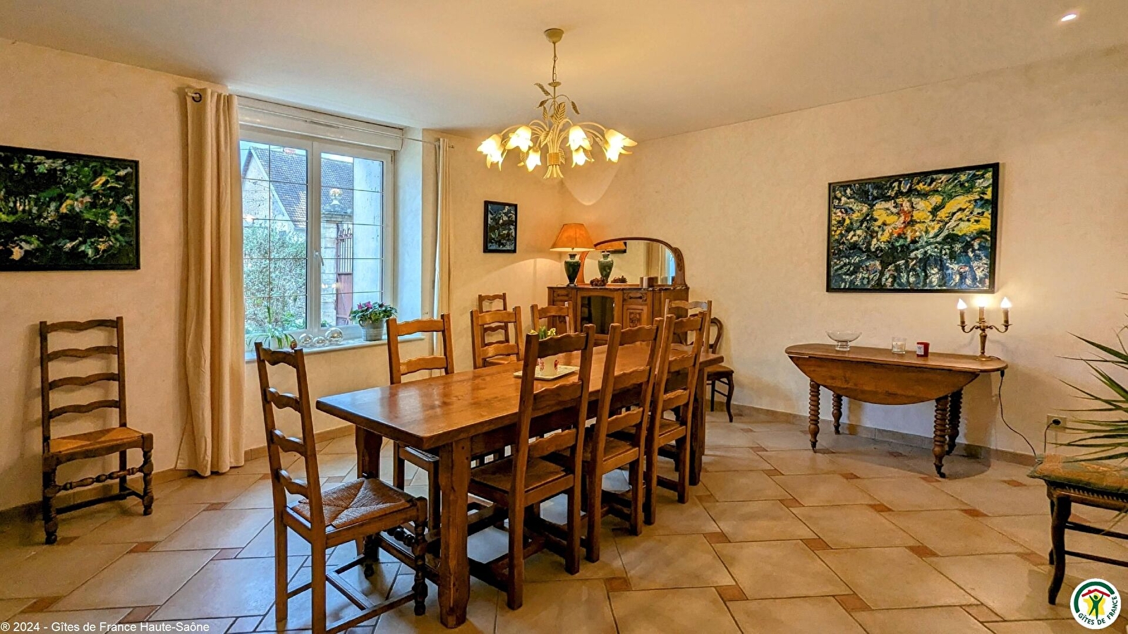 mitoyen à la maison des propriétaires, vous offre : au rez-de-chaussée : un grand couloir donnant sur une salle à manger, une chambre avec 1 lit de 160 cm , 1 lit de 90 cm et 1 lit bébé, une cuisine séparée entièrement équipée avec accès direct à la terrasse, une salle de bain avec baignoire et douche, un WC indépendant. Coin salon avec cheminée, TV et WIFI. A l'étage : accès possible par 2 escaliers différents (dont 1 assez raide) : 2 chambres avec chacune 1 lit de 160 cm et 1 lit de 90 cm, dont une avec salle d'eau et WC privatifs. Buanderie avec lave-linge et sèche-linge dans une dépendance de l'autre côté de la cour. Terrasse donnant sur un grand parc arboré, et clos, en bord de Saône (les enfants sont sous la responsabilité des parents). Jeux pour enfants, terrain de pétanque, filet de badminton, salon de jardin, barbecue, transats. Grande piscine de 11 X 5 mètres (profondeur de 1 à 2 mètres), à partager avec les propriétaires (accès libre de 10H00 à 17H00, enfants accompagnés obligatoirement par un adulte responsable). Parking privatif fermé. Local à vélos à disposition. Petits animaux acceptés sur demande.