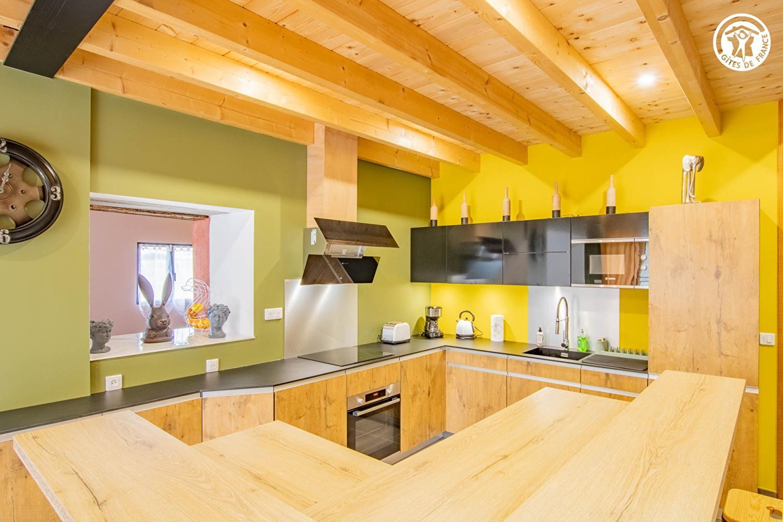 Anne & Charles ("compagnon charpentier" ayant œuvré à l'intégralité des travaux de structure du gîte) vous accueillent au sein d'une authentique ferme de pays datant du XVIIIème siècle soigneusement restaurée, blottie en "cul de sac" en lisière d'une bucolique plaine de champs & prairies, aux confins d'un hameau résidentiel. Agréable cadre préservé en pleine campagne péri-urbaine, en toute proximité de l'intégralité des commodités, à deux pas de la vaste forêt sauvage de la Ferté parsemée d'étangs (littéral "poumon vert" du territoire sur 18km², à parcourir lors de reposantes balades à pied ou VTT), au sein d'un petit village de la proche "couronne" chalonnaise lové sur les rives de la Saône, célèbre pour abriter la demeure de Nicéphore Niepce l'inventeur de la photographie qui y résida & mourut ("Maison du Gras" labellisée "Maisons des Illustres"), "iconique" site historique de réputation mondiale (visitable) où il fit l'intégralité de ses recherches & découvertes et d'où fut prise la toute première photographie officielle de l'histoire (l'illustre "Point de vue du Gras"). Spacieux gîte de grand confort. Vaste pièce de vie de 70m². Très élégant cachet campagnard aux accents contemporains, d'esprit "scandinave", conjugué à une chaleureuse ambiance montagnarde boisée. Beaucoup de charme, style & caractère. Cosy & ultra douillet. Triple terrasse à disposition dont deux abritées (balcon-terrasse & une privative côté chambre). Terrain naturel "brut". Belle vue dégagée sur la campagne environnante.