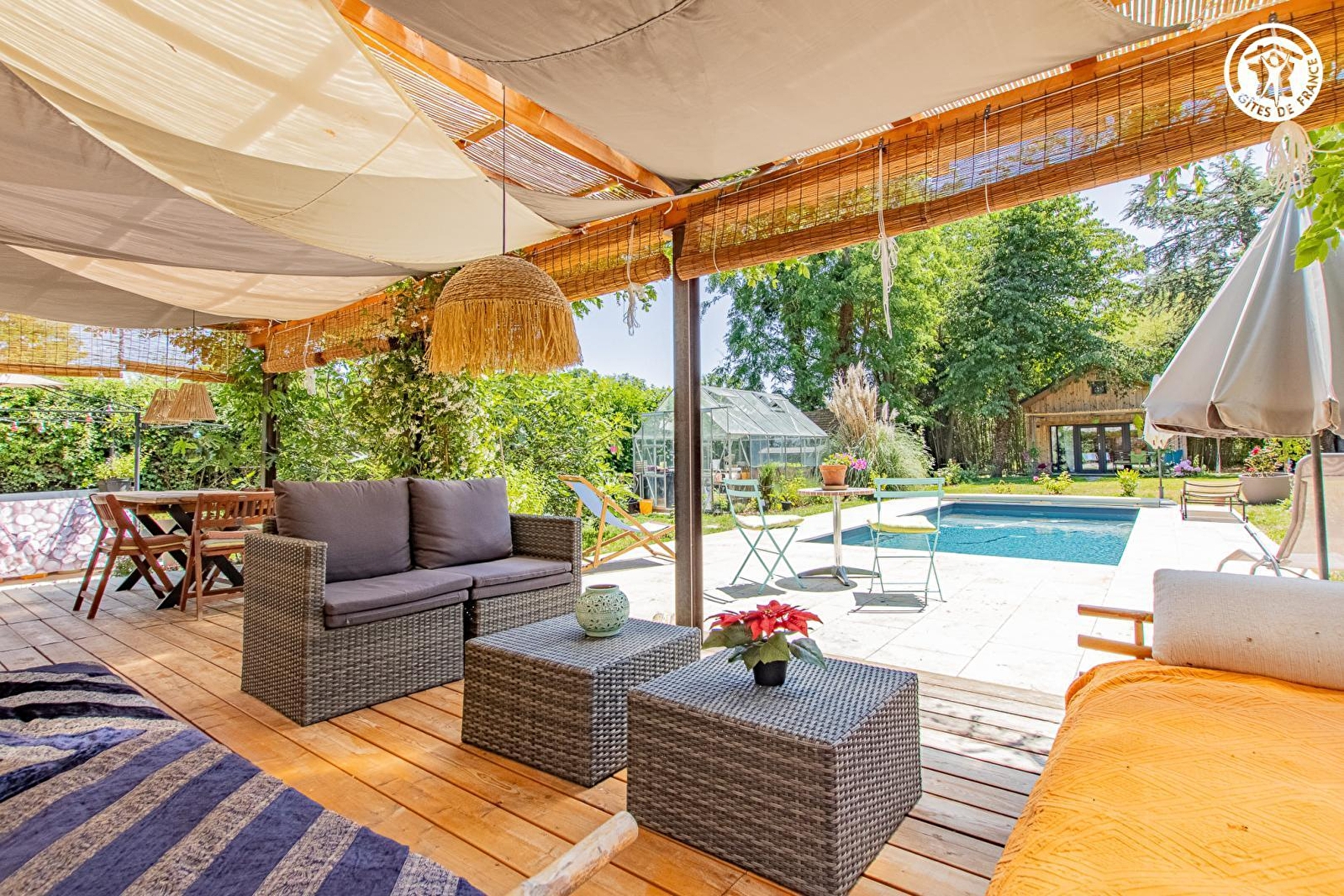 Élégante authentique demeure bourgeoise de caractère chargée d'histoire datant de 1818 intégralement restaurée, flanquée d'un charmant petit chalet contemporain, nichée en pleine campagne brionnaise vallonnée, en lisière d'un bucolique plateau de pâtures (accueillant les célèbres les vaches charolaises comme proches voisines en saisons) aux confins d'un mini hameau rural niché "sur la route" séparant Digoin & Marcigny. Possibilité d'observer la faune sauvage sur place (chevreuils, lièvres, renards, cigognes, rapaces etc…). Magnifique écrin paysagé conjuguant agriculture & pleine nature, non loin du cœur du village, pétri de charme, célèbre pour son iconique église romane classée du XIe. Spacieux gîte de très bon confort. Chaleureux cachet campagnard aux touches contemporaines d'esprit "campagne chic" sublimé par l'âme du bâti d'origine (escalier, murs & manteau de cheminée en pierres, poutraison & charpente…). Ambiance cosy & douillette. Beaucoup de charme & caractère. Agréable jardin de 6000m², soigneusement fleuri, végétalisé & arboré ("bambouseraie", cerisiers, figuiers, pruniers, pommiers, abricotiers… / cueillette possible), intimiste écrin végétal lové à l'abri des regards comprenant une belle piscine chauffée avec douche (6x2.5m) & une spacieuse terrasse abritée offrant une apaisante vue dégagée sur les prés.