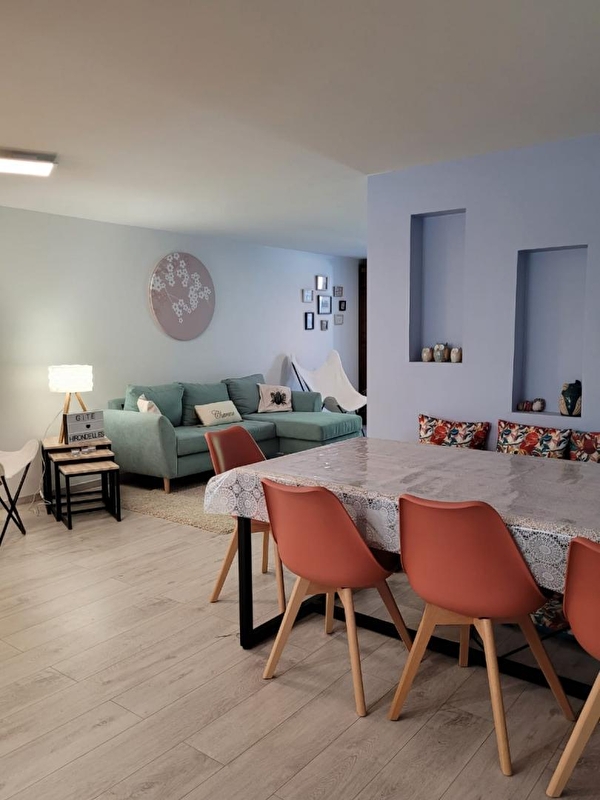 Situé à deux pas de la ville thermale de Lons le Saunier, dans un charmant village, ce logement mitoyen (accessible par quelques marches) se compose d'une pièce de vie avec coin cuisine équipé, d'un espace repas, d'un salon avec canapé et TV, et de 3 chambres : 1 avec 2 lits simples et 2 avec chacune un lit double (160*200), d'une salle d'eau avec une grande douche à l'italienne et d'un WC indépendant. Côté extérieur, vous pourrez profiter d'une petite terrasse exposée à l'Est, avec salon de jardin et barbecue. Pour votre plus grand confort, les draps et serviettes de toilettes sont fournis. Idéalement situé : parc de jeux arboré à 5 mns :avec jeux pour enfants, terrain de pétanque et table de ping-pong. Vous pourrez visiter les pittoresques villages de Chateau-Chalon et Baume les Messieurs (20 mns en voiture) et rejoindre la région des lacs en une trentaine de minutes. Étant situé dans une impasse, la dépose des bagages est seulement possible. Le stationnement se fera sur la place du village à 100 m.