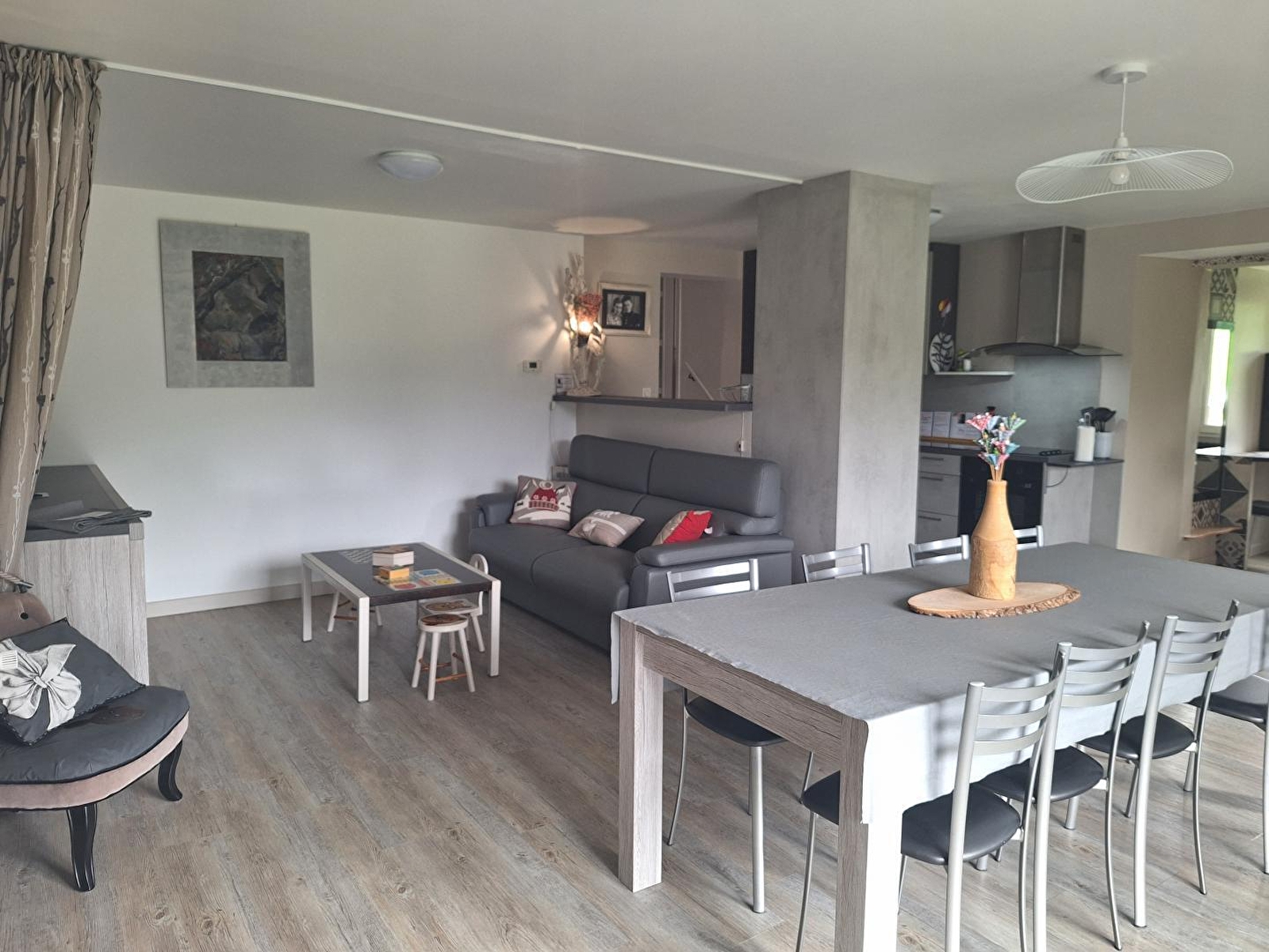 Ce gîte de plain-pied, entièrement indépendant, se situe au rez-de-chaussée de la maison des propriétaires. Il se compose d'une pièce de vie avec cuisine toute équipée, espace salle à manger et coin salon avec canapé et TV, d'une chambre avec 2 lits simples (90*190), de 2 chambres en enfilade, l'une avec un lit simple (90*190) et la seconde avec 1 lit double (140*190), d'une salle d'eau avec douche, d'une lingerie avec dressing et d'un WC indépendant. La propriétaire, Elyane, passionnée de décoration a su apporter sa touche personnelle afin de créer un lieu unique. Possibilité d'accueillir une personne supplémentaire (couchage en canapé convertible dans le salon). Côté extérieur, vous profiterez d'un accès direct à une grande terrasse aménagée avec salon de jardin, transats, store électrique et plancha électrique, donnant sur un grand jardin clos. Vous pourrez ainsi admirer la magnifique vue surplombant les toits du village. Idéalement situé pour découvrir la cité médiévale de Nozeroy, la Source de l'Ain, les cascades du Hérisson et le lac de Chalain. Parking privé sur place et volets dans les chambres.