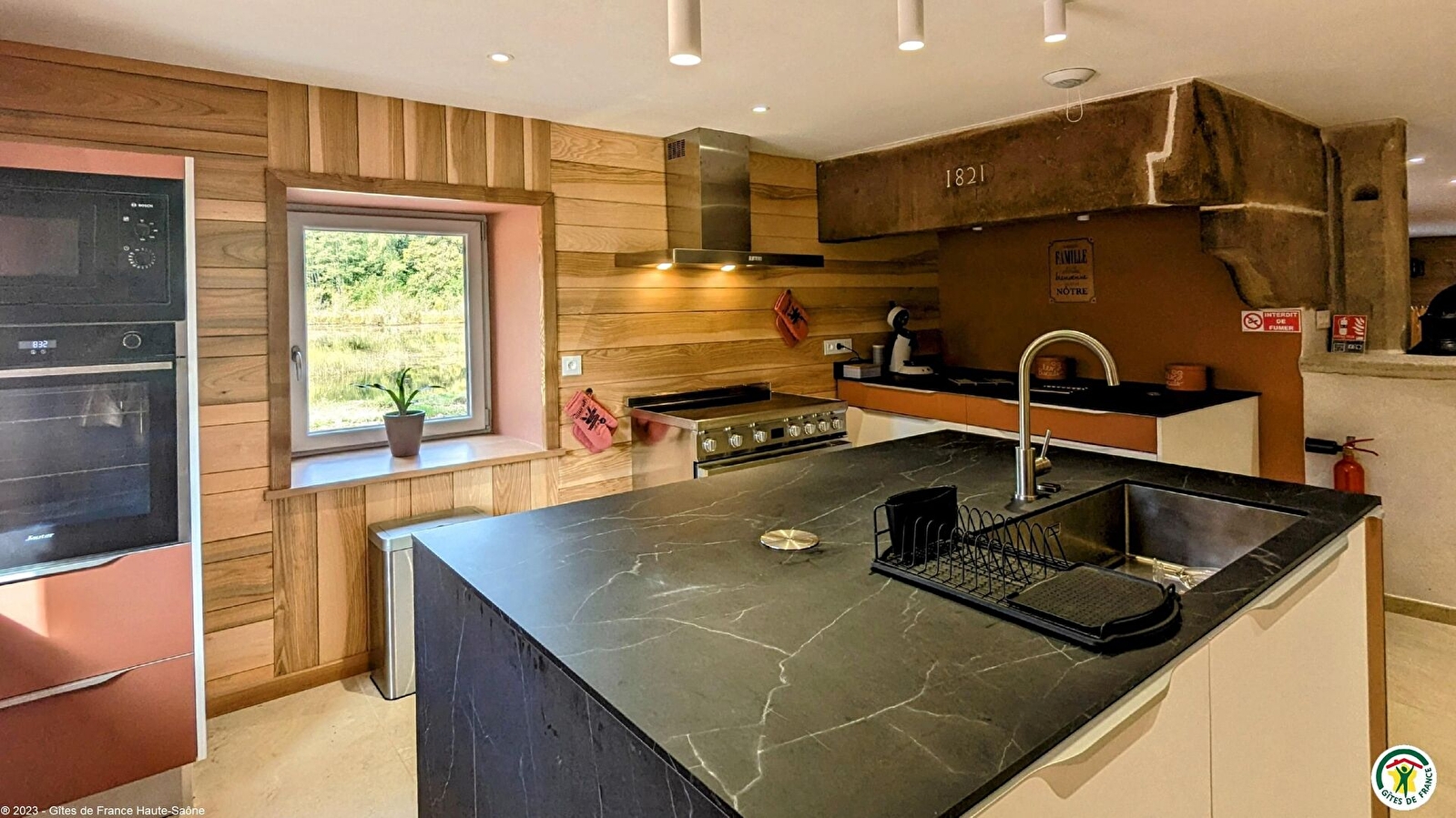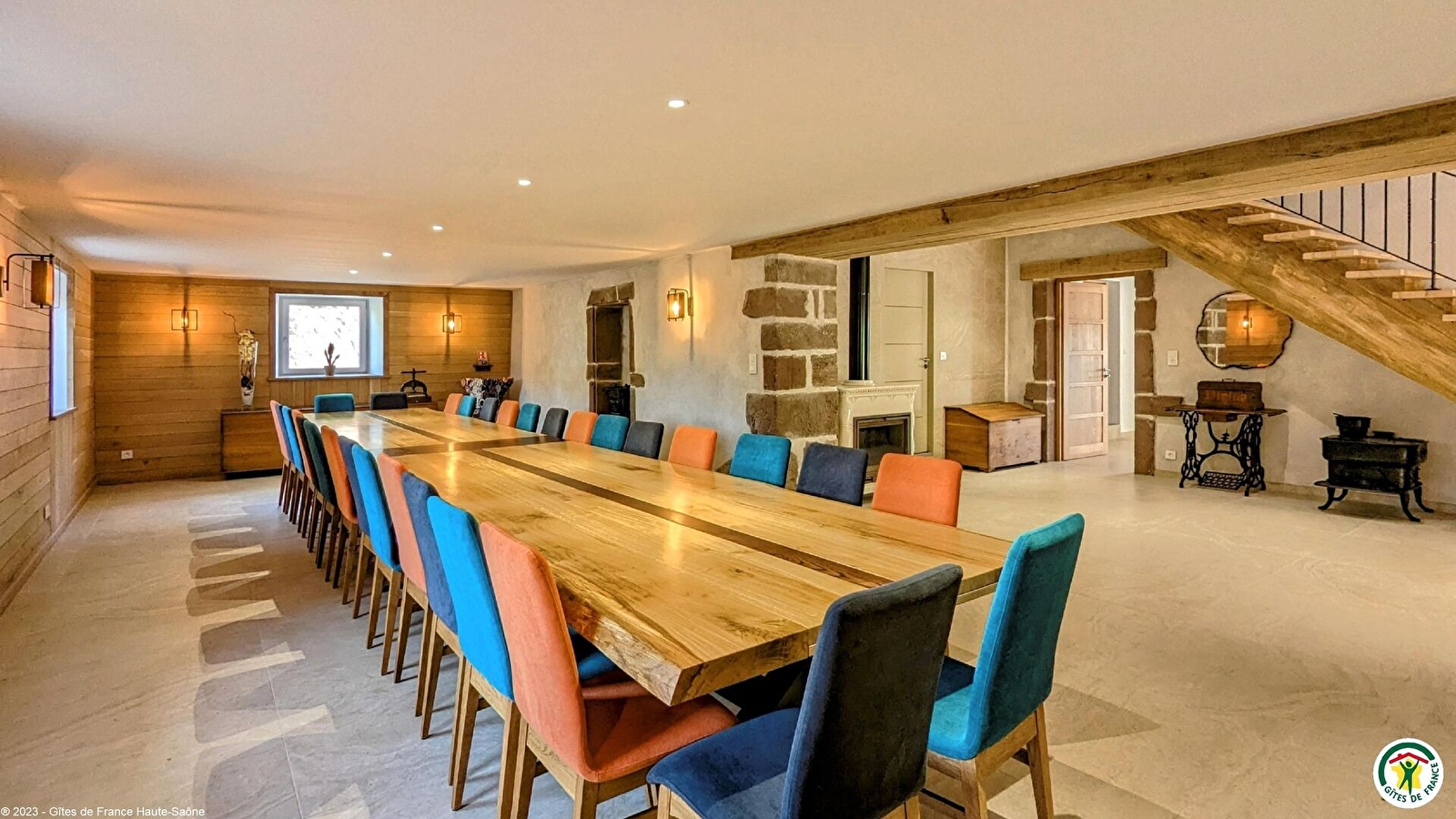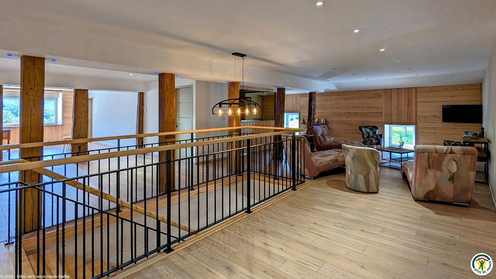 Au coeur du plateau des 1000 Etangs, en pleine forêt, le Gîte des Prary - 15 personnes, vous surprendra par sa vue exceptionnelle sur l'étang privé et les montagnes Vosgiennes...Au rez-de-chaussée: entrée avec poêle à bois, salle à manger, cuisine moderne entièrement équipée, 1 salle de jeux avec baby-foot, billard, jeux de société, tapis de marche et vélo d'appartemment. Espace buanderie avec lave-linge et sèche-linge. 1 WC indépendant et une douche. 1 chambre avec 1 lit de 140 cm, avec salle d'eau et WC privatifs. Accès à l'étage par un escalier majestueux en bois : 2 espaces salon, dont un avec bureau, 1 espace détente avec sauna, tisanerie, fauteuils et canapés, 1 WC indépendant. 6 chambres : 2 chambres avec chacune 1 lit de 160 cm, une salle d'eau avec douche italienne et 1 WC privatif, 1 chambre avec 1 lit de 160 cm avec salle de bain avec baignoire balnéo, WC privatifs, 1 chambre avec 1 lit de 160 cm, salle d'eau et WC communicante avec 1 chambre de 3 personnes (3 lits de 90X200 cm), 1 chambre avec 1 lit de 160 cm, salle de bain avec baignoire, WC privatifs. Terrasse (en cours d'aménagement), avec barbecue, salon de jardin parasol, transats.
