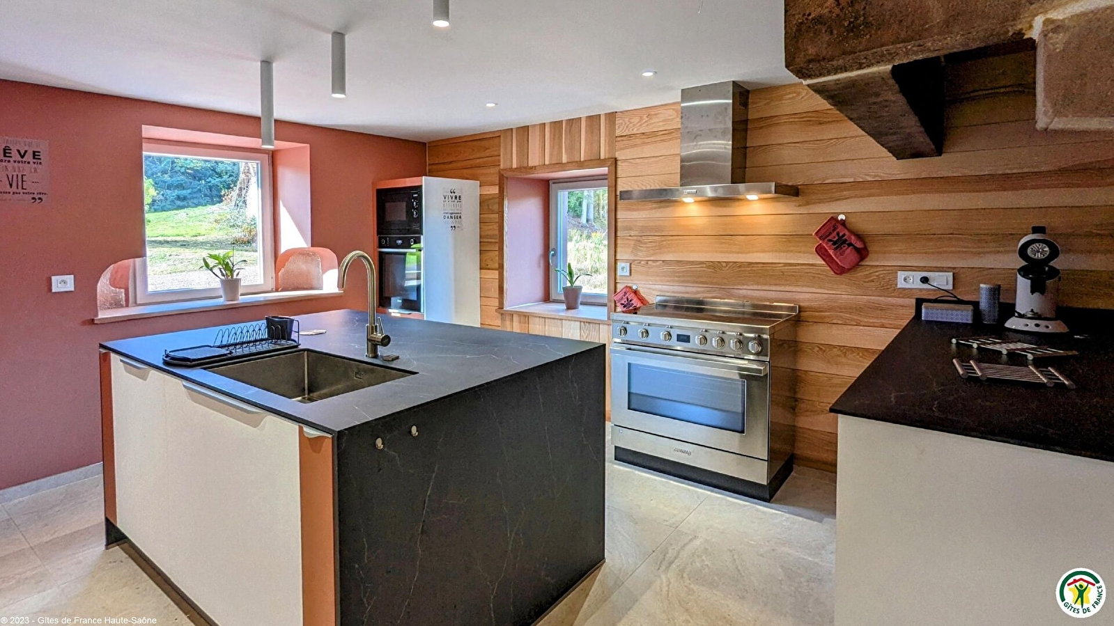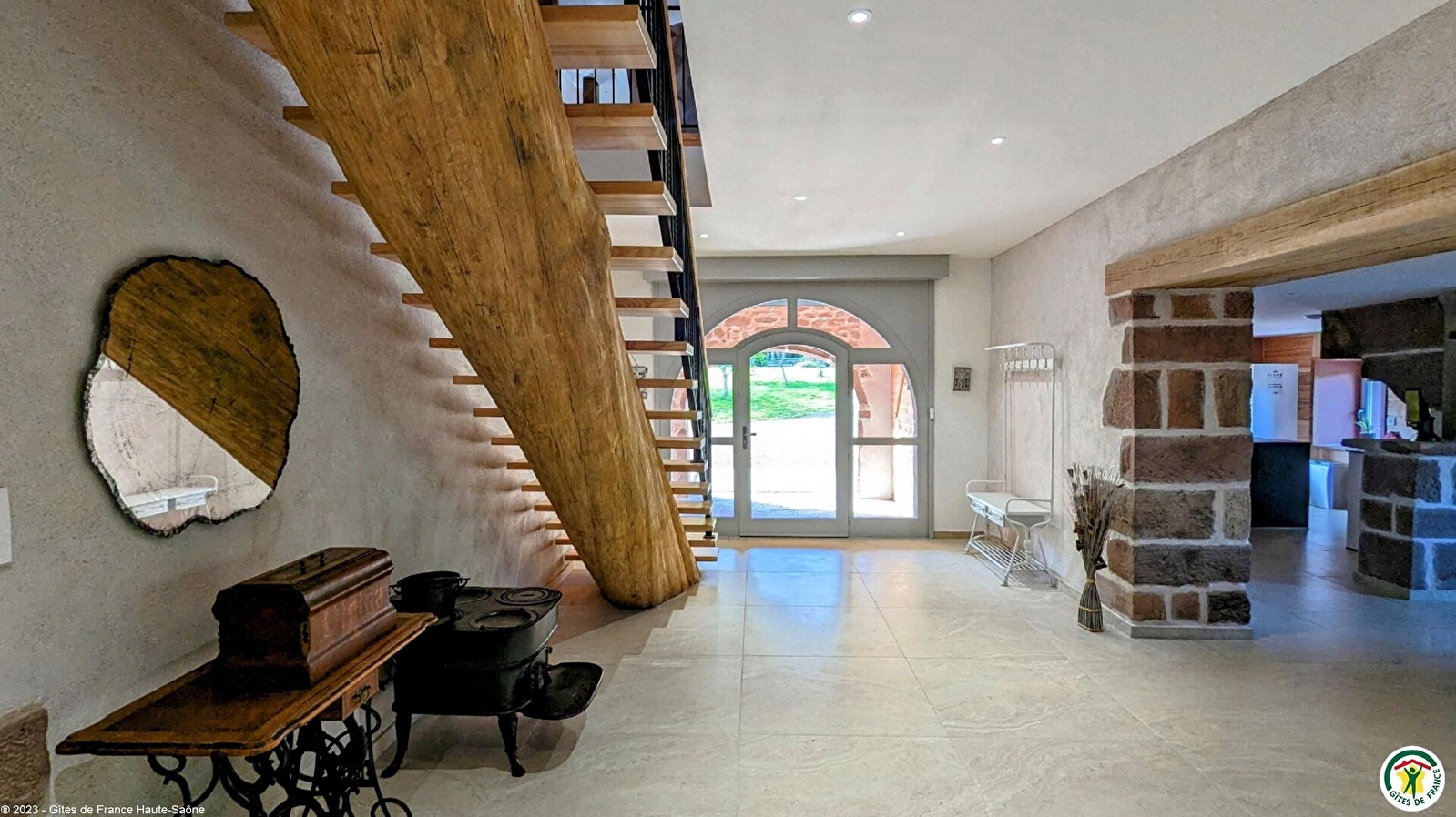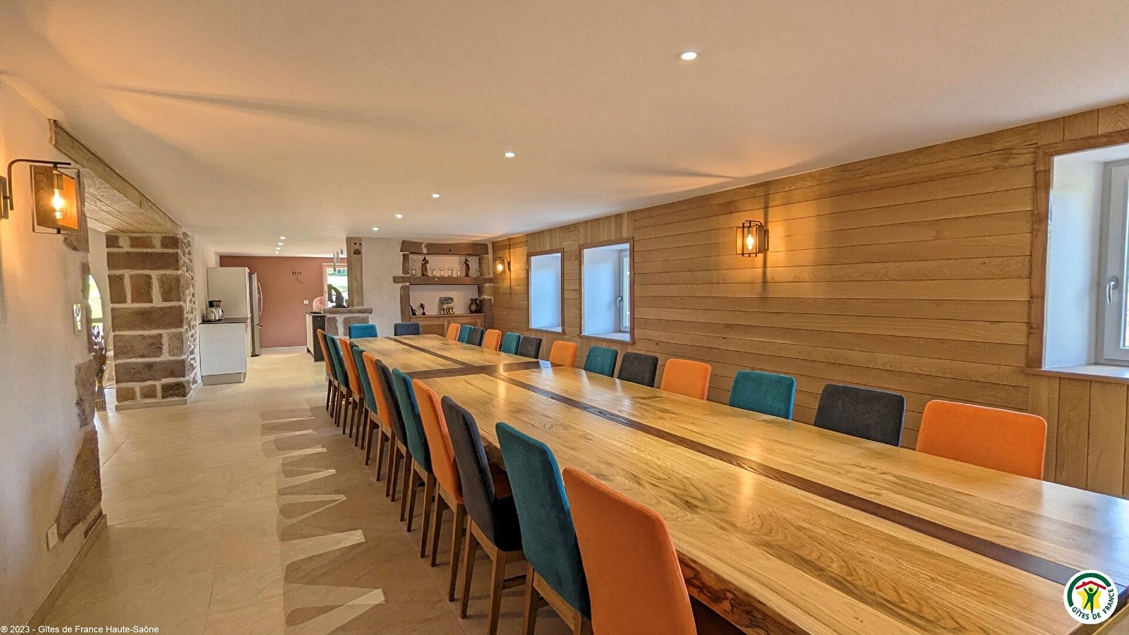 Au coeur du plateau des 1000 Etangs, en pleine forêt, le Gîte des Prary - 15 personnes, vous surprendra par sa vue exceptionnelle sur l'étang privé et les montagnes Vosgiennes...Au rez-de-chaussée: entrée avec poêle à bois, salle à manger, cuisine moderne entièrement équipée, 1 salle de jeux avec baby-foot, billard, jeux de société, tapis de marche et vélo d'appartemment. Espace buanderie avec lave-linge et sèche-linge. 1 WC indépendant et une douche. 1 chambre avec 1 lit de 140 cm, avec salle d'eau et WC privatifs. Accès à l'étage par un escalier majestueux en bois : 2 espaces salon, dont un avec bureau, 1 espace détente avec sauna, tisanerie, fauteuils et canapés, 1 WC indépendant. 6 chambres : 2 chambres avec chacune 1 lit de 160 cm, une salle d'eau avec douche italienne et 1 WC privatif, 1 chambre avec 1 lit de 160 cm avec salle de bain avec baignoire balnéo, WC privatifs, 1 chambre avec 1 lit de 160 cm, salle d'eau et WC communicante avec 1 chambre de 3 personnes (3 lits de 90X200 cm), 1 chambre avec 1 lit de 160 cm, salle de bain avec baignoire, WC privatifs. Terrasse (en cours d'aménagement), avec barbecue, salon de jardin parasol, transats.