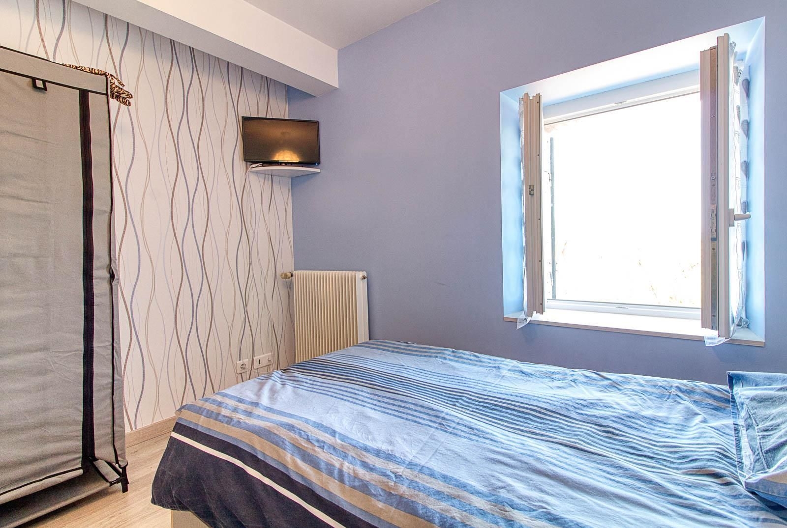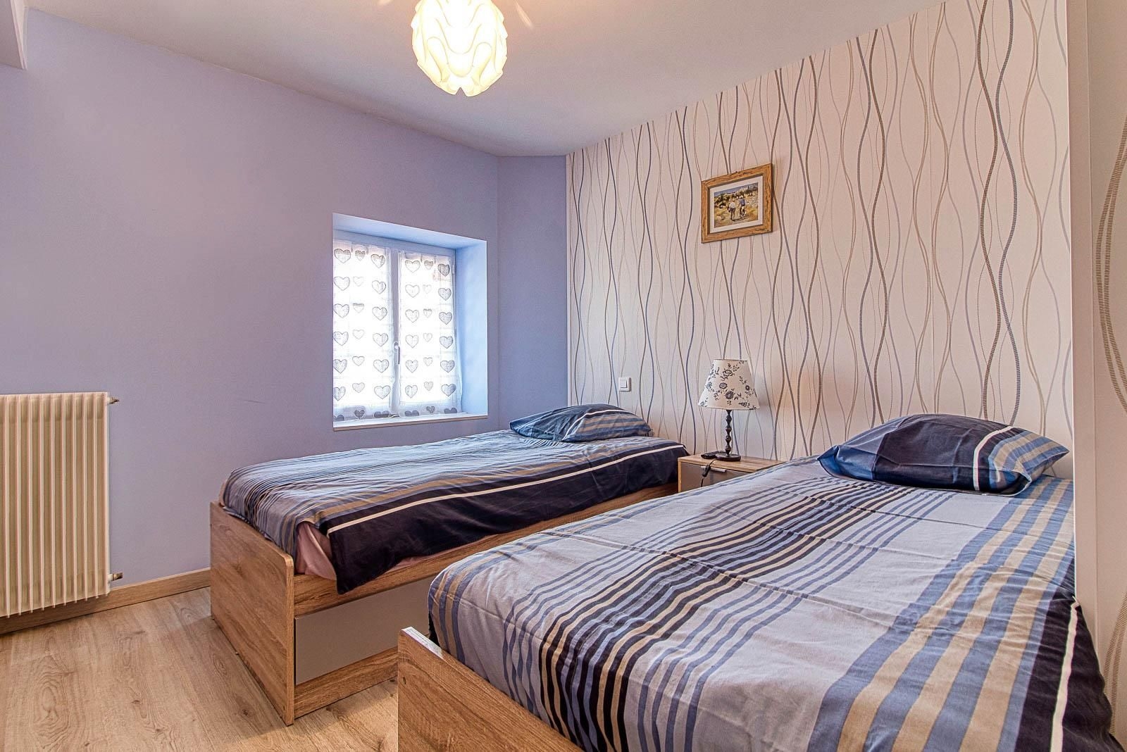 A l'étage : 2 chambres, l'une avec un lit 160 et l'autre avec 2 lits 90 jumelables et TV. Salle d'eau avec WC.