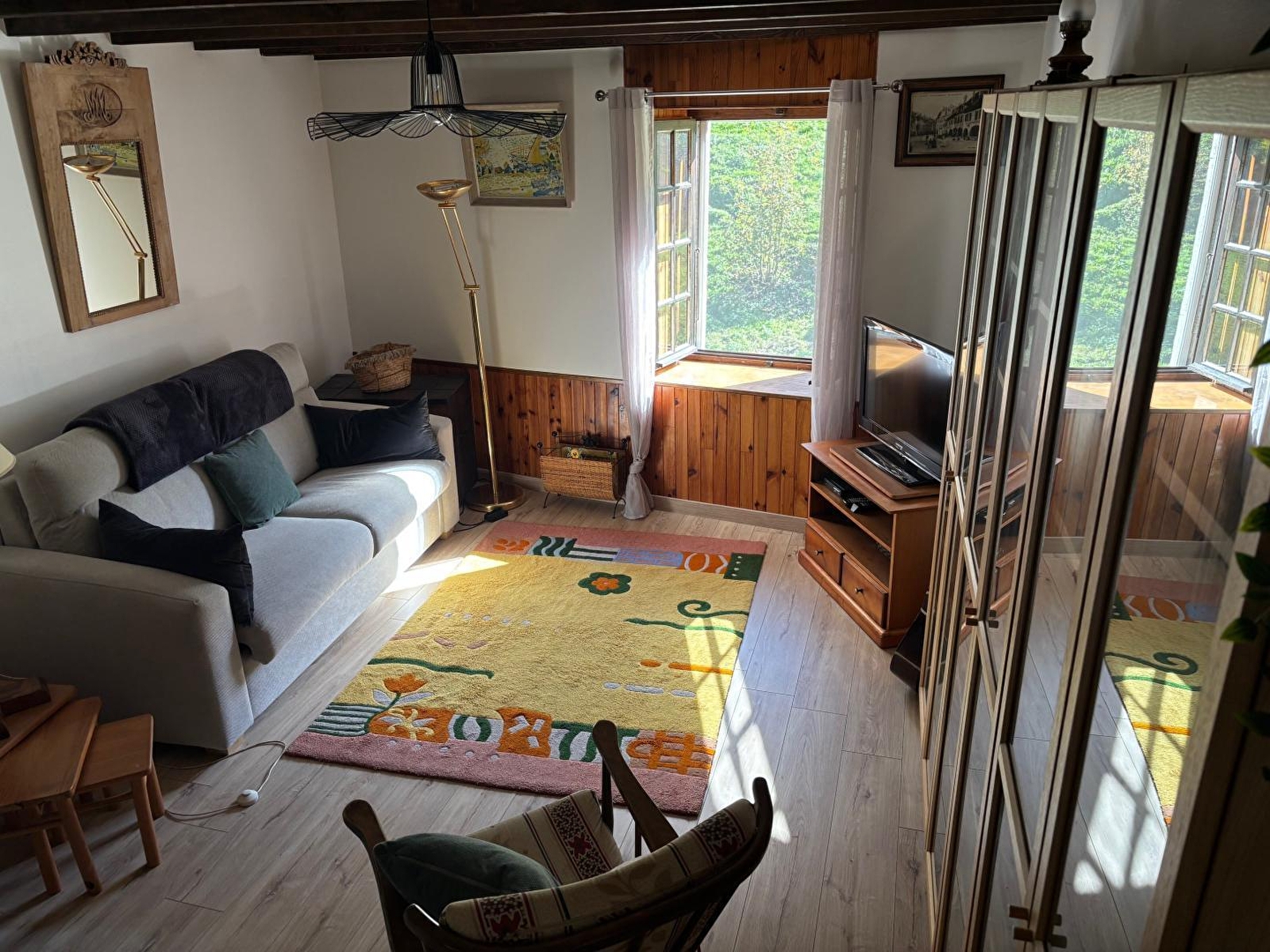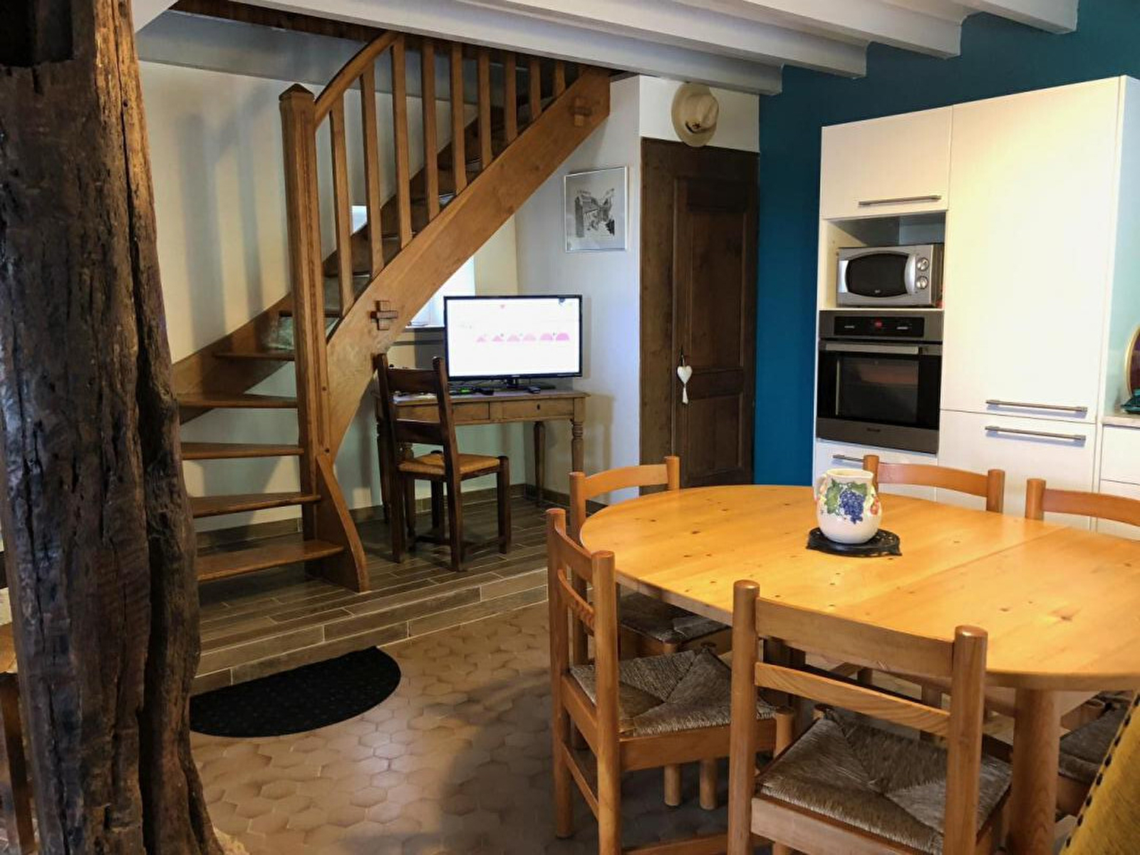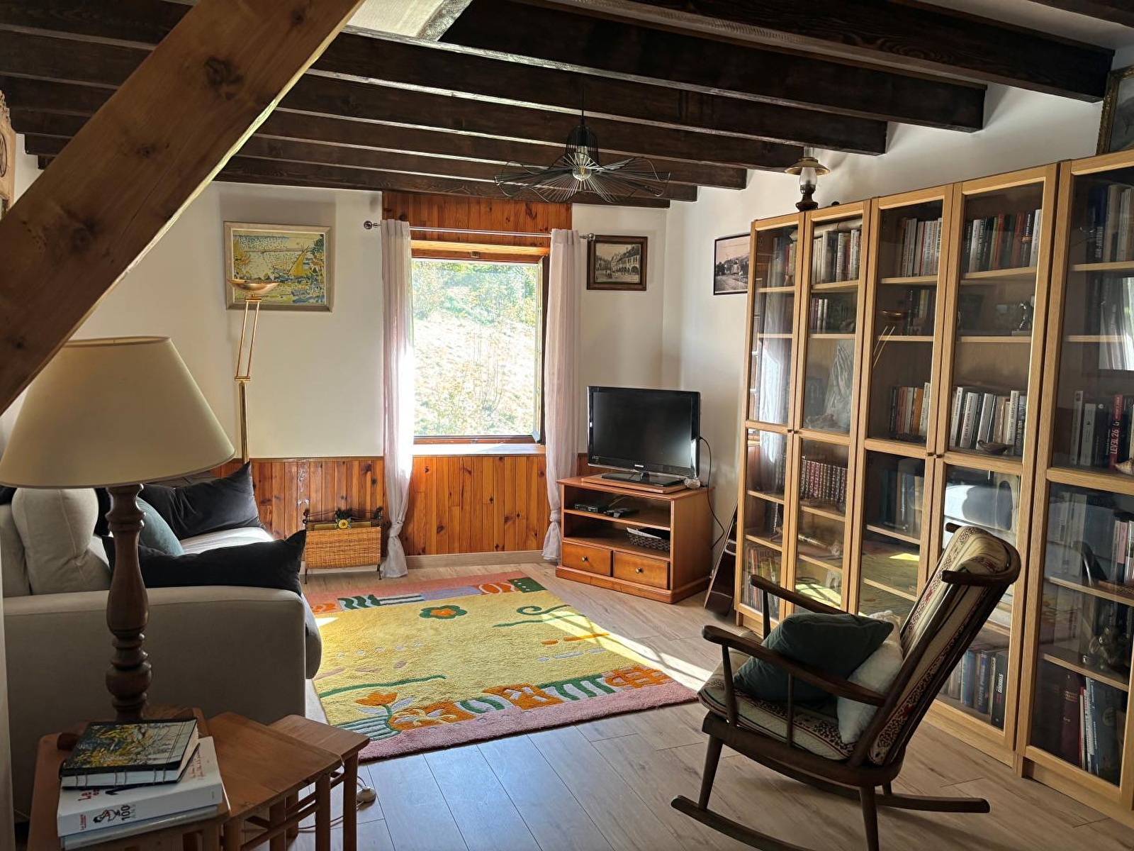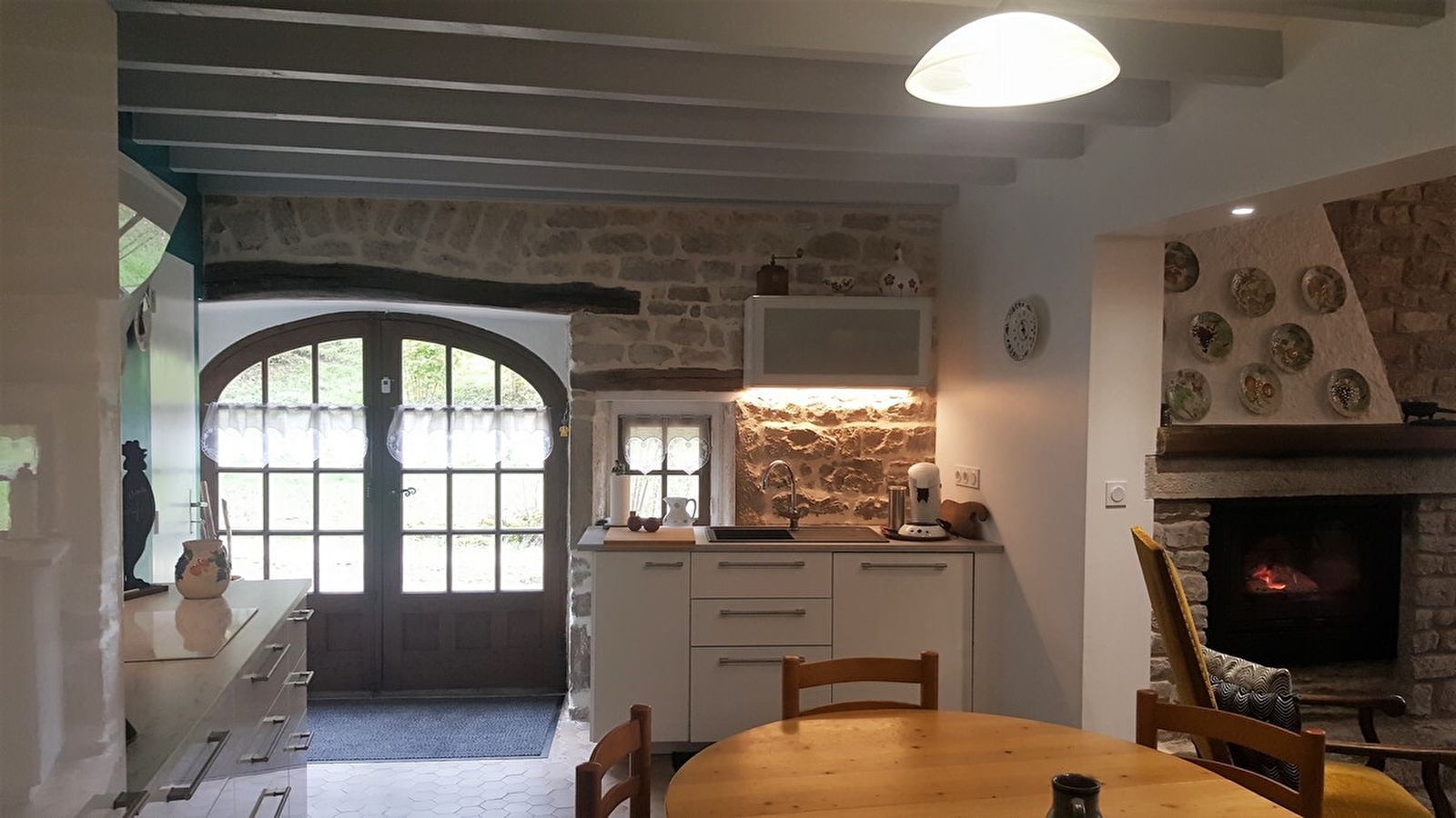 En plein cœur du vignoble jurassien, à proximité des villages de Baume les Messieurs et Château-Chalon, venez découvrir ce gîte aménagé dans une belle maison en pierres apparentes, mitoyen à un autre gîte. Au rez-de-chaussée, vaste pièce à vivre composée d'un espace salle à manger et salon avec cheminée, ainsi que d'une belle cuisine entièrement équipée. Accès par la cuisine au garage ou se trouve une buanderie avec lave-linge, et un wc indépendant. A l'étage, mezzanine salon avec bibliothèque, canapé neuf et confortable convertible pouvant accueillir 2 personnes supplémentaire et télévision écran plat. Salle d'eau avec cabine de douche et wc, et une grande chambre avec un lit de 140cm, un lit de 130cm et un lit de 120cm. Côté extérieur, terrain attenant non clos en bordure de la rivière, équipé d'un salon de jardin et barbecue. Garage pour motos et vélos à disposition. N'attendez plus pour réserver ce petit coin de paradis ! Possibilité d'accueillir jusqu'à 9 personnes avec le gîte mitoyen (référence G2123).