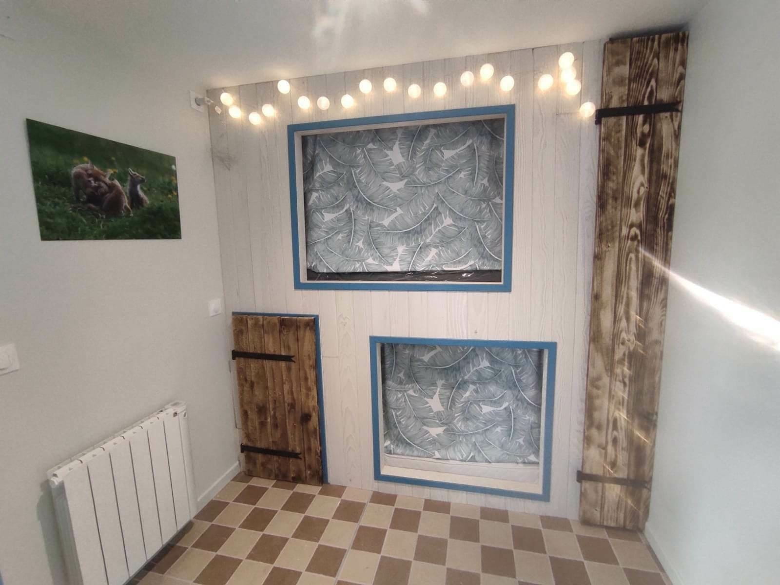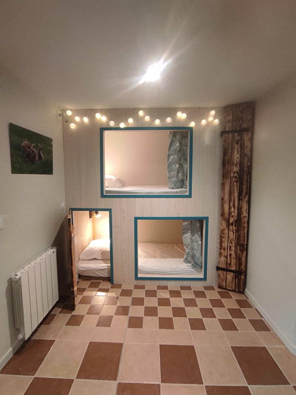cabane avec 2 lits superposés de 90 x 190 (voir photos)