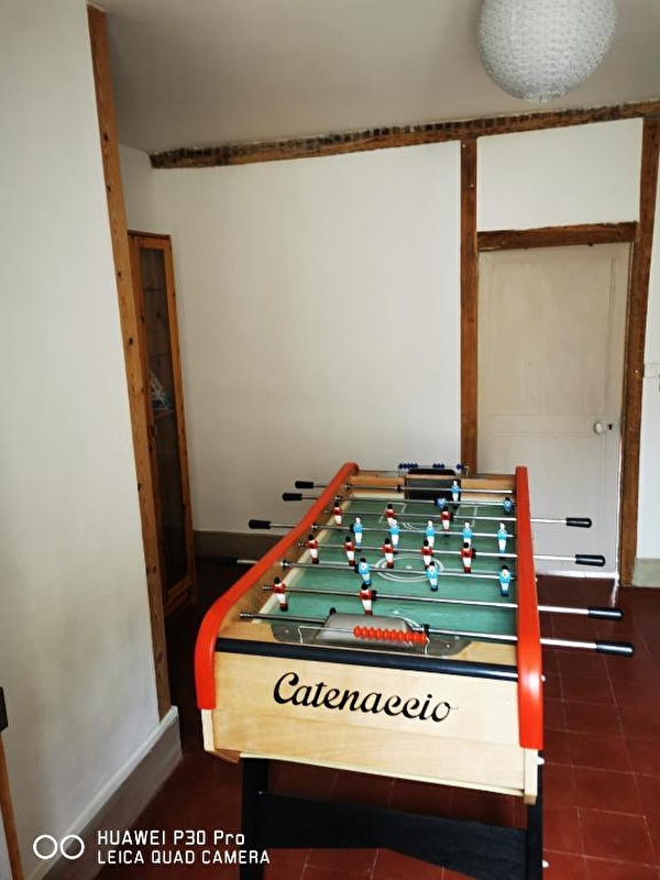 A l’étage : 1 pièce palière environ 12 M2 avec baby-foot, coin lecture et jeux de société.