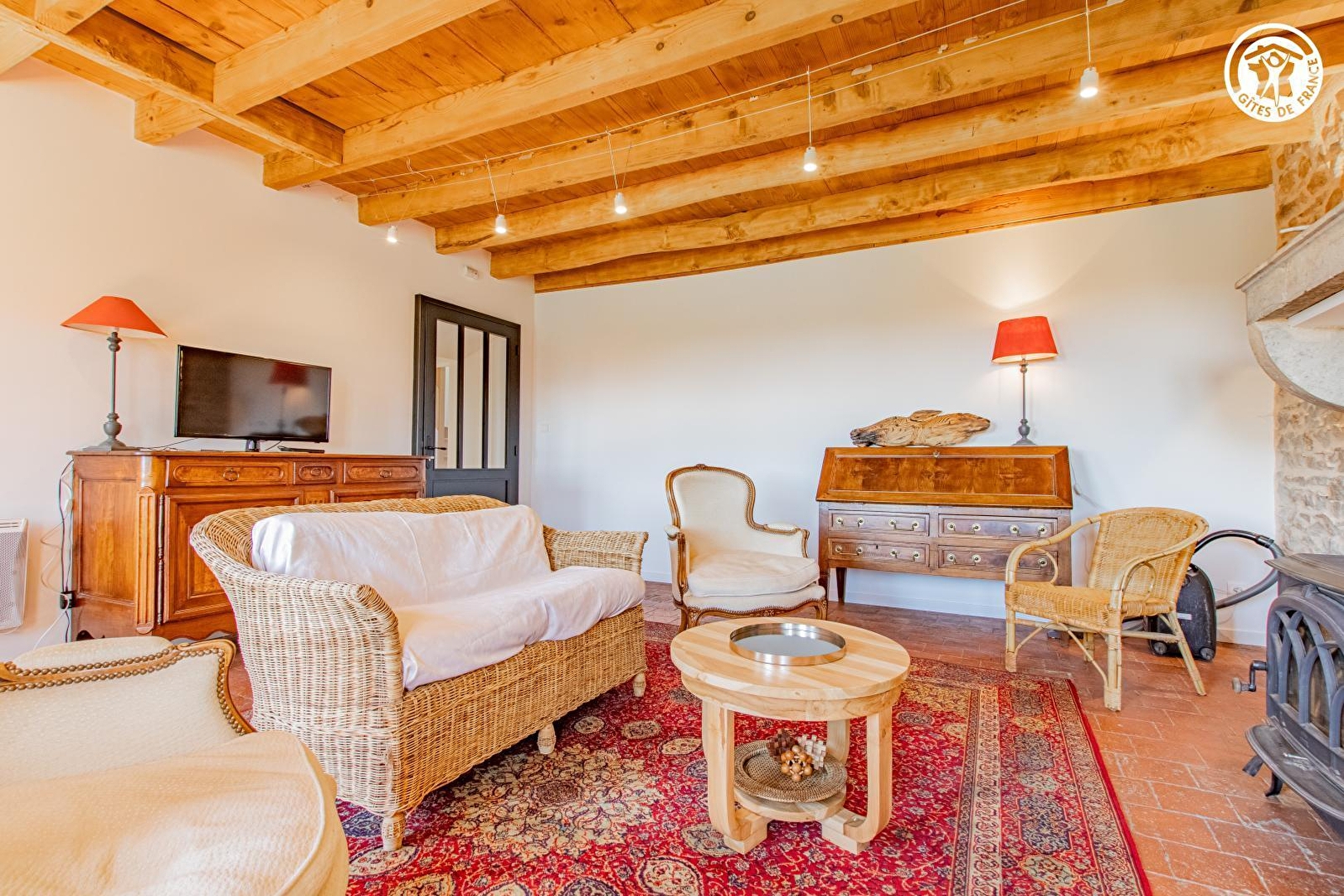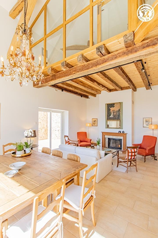 Composition : Maison individuelle voisinant second gîte (totale indépendance). Wifi (fibre). Chauffage électrique. Cheminée + poêle à bois. Climatisation (dans 3 chambres). Rdc : séjour-cuisine-salon, salle d'eau (douche), Wc indépendant. Demi étage : salon TV. 1er étage : 4 chambres (2 avec 1 lit 2 p. 160x200cm / 2 lits 1 p. 100x190cm / 2 lits 1 p. 90x190cm + lit 2 p. 140x190cm), sdb (baignoire), Wc indépendant. Terrasse (double) + jardin (400m²) + parking privés. Supérette 5 km. Commerces dont mini supermarché à 10 km.