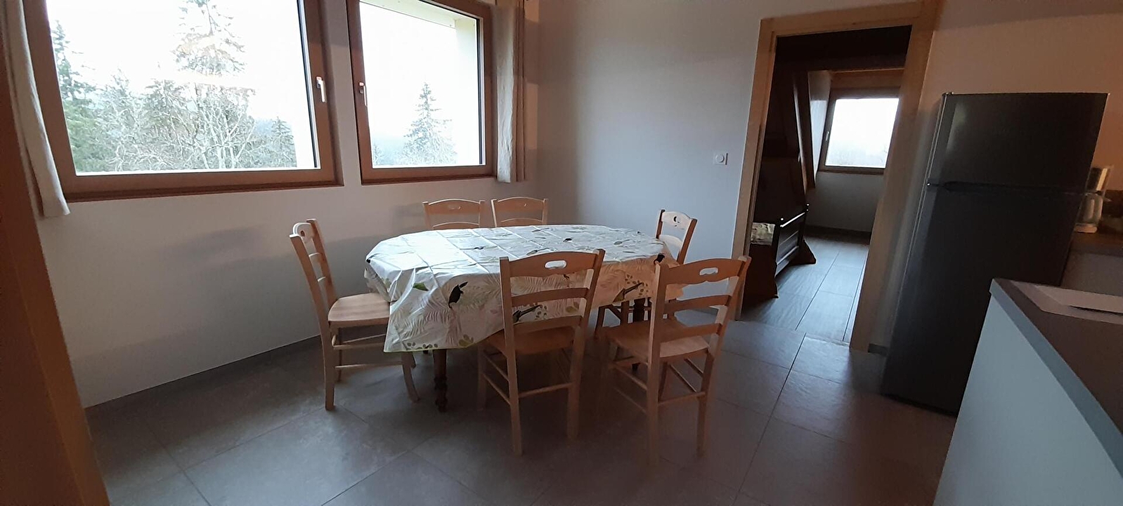 Au cœur du Parc du Haut-Jura, Station de Les Rousses, ce logement au 2ème étage d'une maison abritant d'autres gîtes se compose d'une grande pièce de vie avec cuisine équipée, d'un espace salle à manger, d'un espace salon avec canapé non convertible, de 4 chambres (1 ch avec 1 lit 2 pers. (140*190), 2 ch avec chacune 2 lits 90*190, 1 ch avec 1 lit 90*190), d'une salle d'eau avec douche et d'un WC indépendant. Vous pourrez profiter, au rez-de-chaussée, d'une terrasse équipée d'un salon de jardin, de transats et d'un barbecue. Chauffage central. Toutes charges comprises. Gîte non fumeur. L'installation électrique ne permet pas le branchement d'un véhicule électrique ou hybride pour la recharge A 5mn en voiture (ou 25mn à pied) du centre du village où vous trouverez toutes les commodités : pharmacie, restaurants, bureau de tabac, supermarché... nombreuses activités : ski de fond, ski de descente, visite des caves d'affinage, commando Game... Parking privé à 30 mètres et stores dans les chambres.