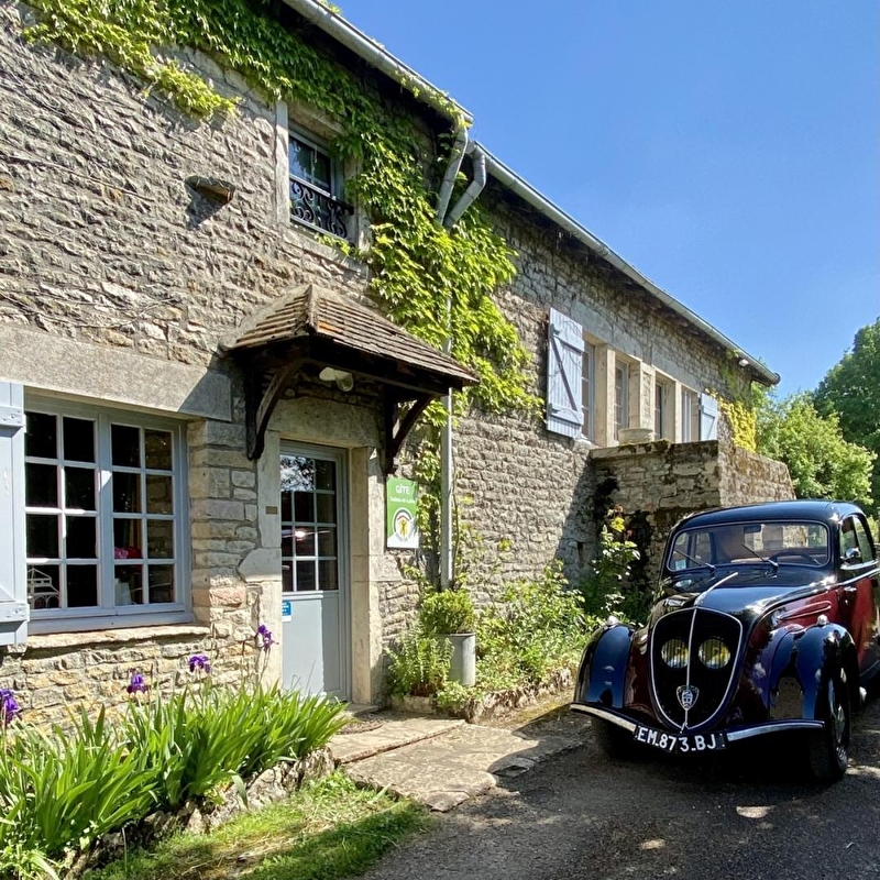 Nadine & Pascal vous accueillent dans une ravissante maison vigneronne de caractère du XIXe restaurée avec soins, bordant une petite ruelle en impasse sur une vaste propriété naturelle de 1 ha, aux confins d'un paisible pittoresque petit hameau rural, pétri de charme & parfaitement conservé, jouxtant le charmant village typique d'Ozenay (riche d'une église romane classée du XIIe & d'un château médiéval du XVe). Calme & tranquillité totale en pleine campagne, lové au creux d'un magnifique écrin de nature & verdure, bucolique vallon de prairies & bocage où coule une petite rivière, cerclé de vastes forêts sauvages & collines boisées (avec les célèbres charolaises comme voisines privilégiées), à deux pas des premiers vignobles. Sublime site préservé, littéral havre de paix & sérénité. Cadre paysagé de toute beauté. Spacieux gîte de bon confort. Chaleureux cachet campagnard d'esprit « maison de famille » sublimé par les riches traces du passé (majestueuse poutres & charpente, plafonds à la française, manteau de cheminée & linteaux en pierres…). Ambiance dépaysante d'une ancienne demeure chargée d'histoire. Beaucoup de charme. Accès à un agréable espace réservé implanté sur un vaste jardin engazonné & arboré. Superbe vue dégagée sur la douce campagne environnante.