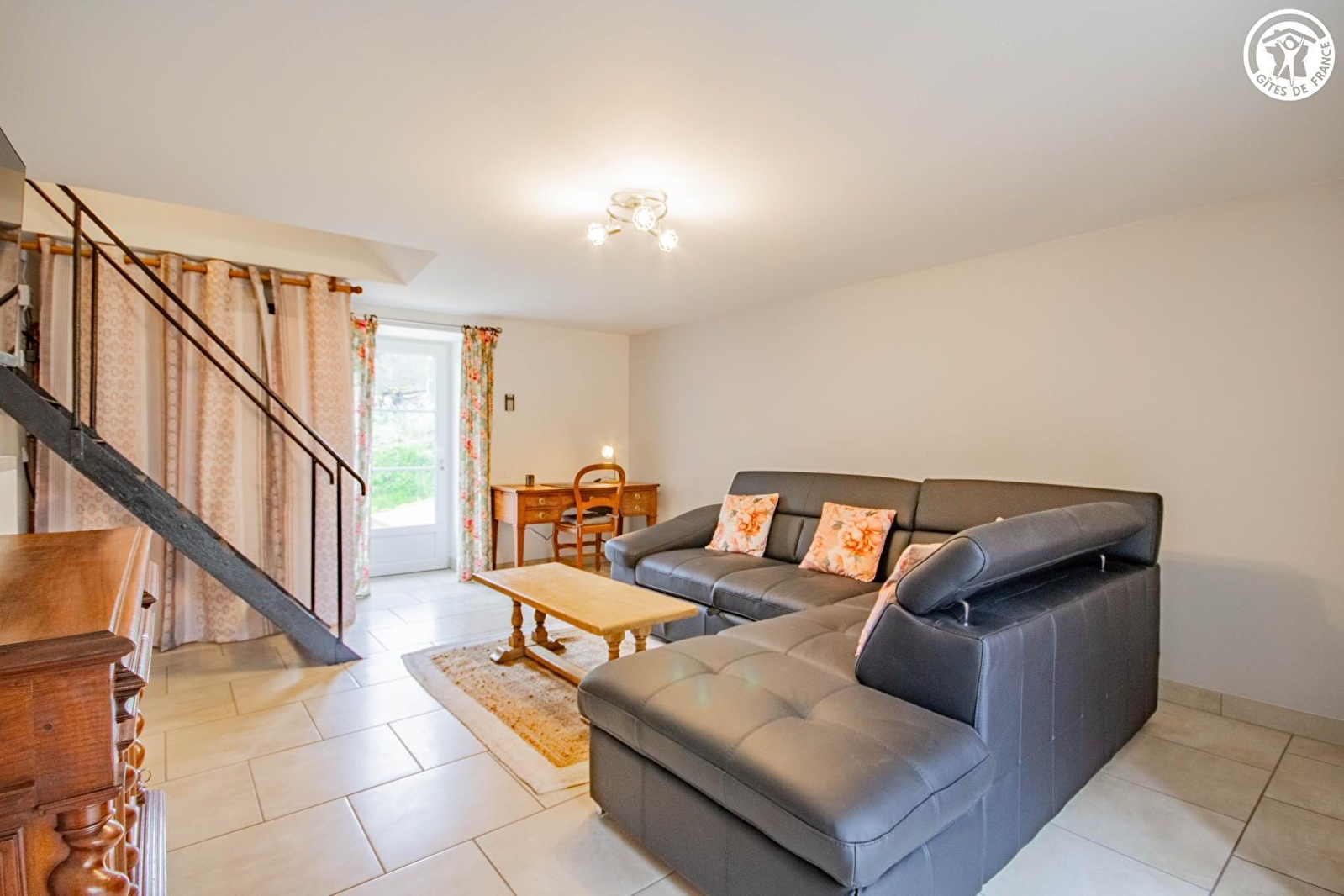 Composition : Maison mitoyenne sur 2 niveaux voisinant l'habitation des propriétaires et un autre gîte (indépendance totale / accès par chemin empierré carrossable sur 1 km). Chauffage poêle à granulés bois. Cheminée. Rdc : séjour-cuisine, salon, salle d'eau (douche/Wc), 1 chambre (lit 2 p. 140x190cm). 1er étage : 1 chambre "ouverte" sur le salon en contrebas (3 lits 2 p. 140x190cm). Terrasse + local vélos + parking privatifs. Réception réseau mobile Orange uniquement. Commerces & services 5 km. Possibilité de louer le gîte 3202 sur la même propriété.