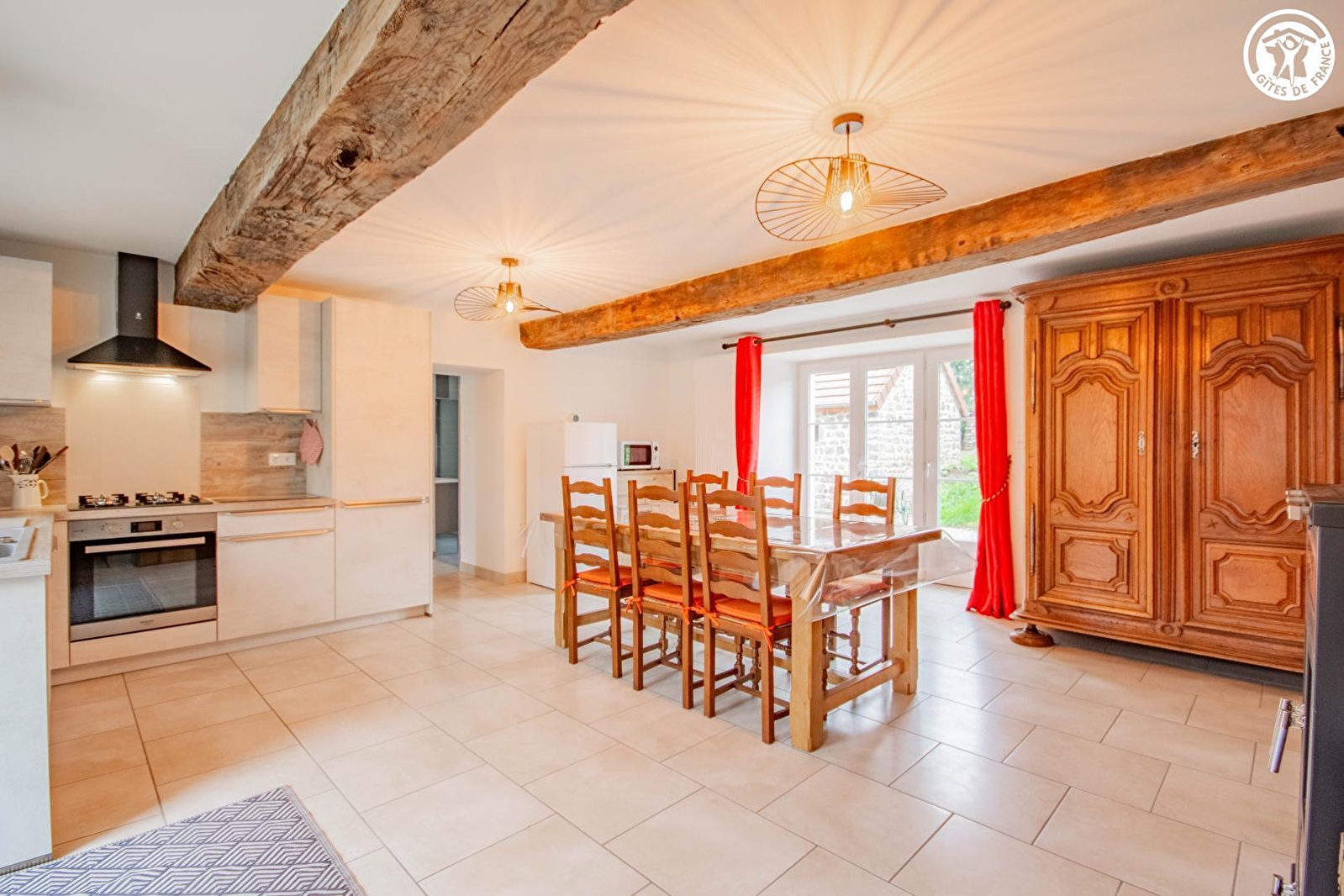 Charmant corps de ferme traditionnel du XVIe siècle, chargé d'histoire & soigneusement restauré, niché en pleine campagne sur une propriété agricole de 62ha (élevage bovin) perchée en "promontoire" sur une colline, à flanc de coteau bien exposé. Calme & tranquillité au sein d'un "mini hameau" rural familial blotti au creux d'un bucolique vallon de prairies traversé par un petit ruisseau, à l'orée d'une belle forêt sauvage en toute proximité des premiers vignobles du Couchois (Côtes Chalonnaises). Cadre paysagé absolument enchanteur, superbe écrin préservé de nature & verdure 100% relaxant & reposant, littéral "mini paradis vert" pour petits & grands. Possibilité d'observer la faune sauvage sur place. Magnifique campagne vallonnée à découvrir aux alentours, conjuguant paysages viticoles & montagne douce, entre vastes forêts sauvages & vallons de bocages. A 2 km du charmant petit village typique de Perreuil, doté d'un original patrimoine (mairie néo-classique, église néo-romane, école de fille néo-gothique…), jouxtant la Voie Verte et le célèbre Canal du centre ("Le Fleuve tranquille", itinéraire navigable niché en pleine nature aux berges préservées, à découvrir lors d'une balade en bateau où à pied). Spacieux gîte de très bon confort. Chaleureux cachet campagnard aux accents contemporains. Beaucoup de charme & de caractère. Agréable terrasse exposée & ombragée avec vue sur le jardin des propriétaires.