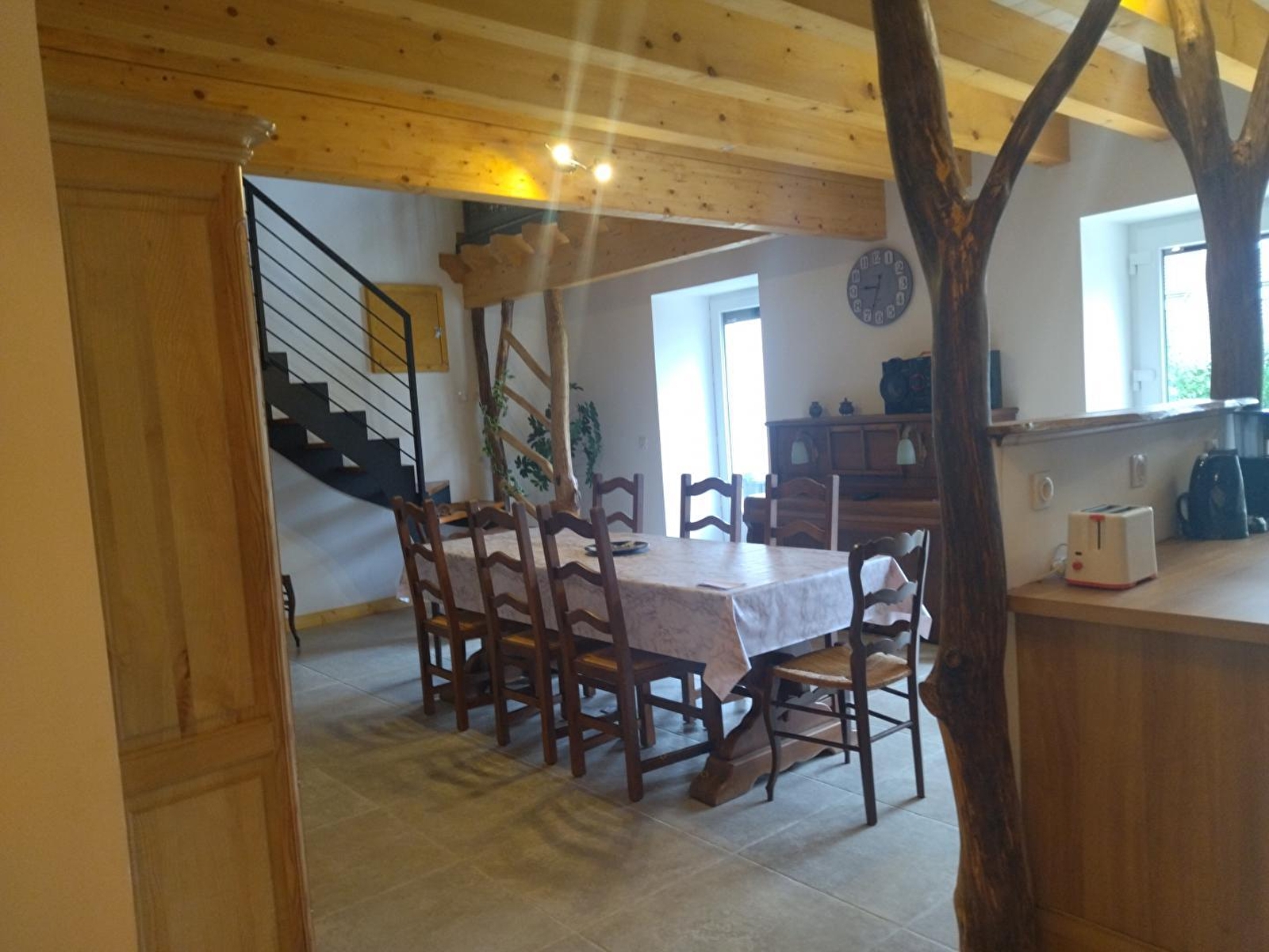 Située sur la route menant au lac de Chalain, cette maison entièrement rénovée sera le lieu idéal pour vos prochaines vacances en famille ou entre amis. Elle se compose au rez-de-chaussée, d'une vaste pièce de vie lumineuse avec cuisine toute équipée, d'un espace salle à manger et d'un coin salon avec poêle à bois (fourni gratuitement), d'une chambre avec un lit double (140*190), d'une salle d'eau avec douche et d'un WC indépendant. A l'étage, une mezzanine salon avec TV, 2 chambres avec chacune 2 lits simples (80*200) et une chambre avec 2 lits superposés (80*190), une salle d'eau avec douche et WC. Côté extérieur, vous pourrez profiter d'une terrasse couverte avec salon de jardin et barbecue, et d'un coin jardin avec transats.