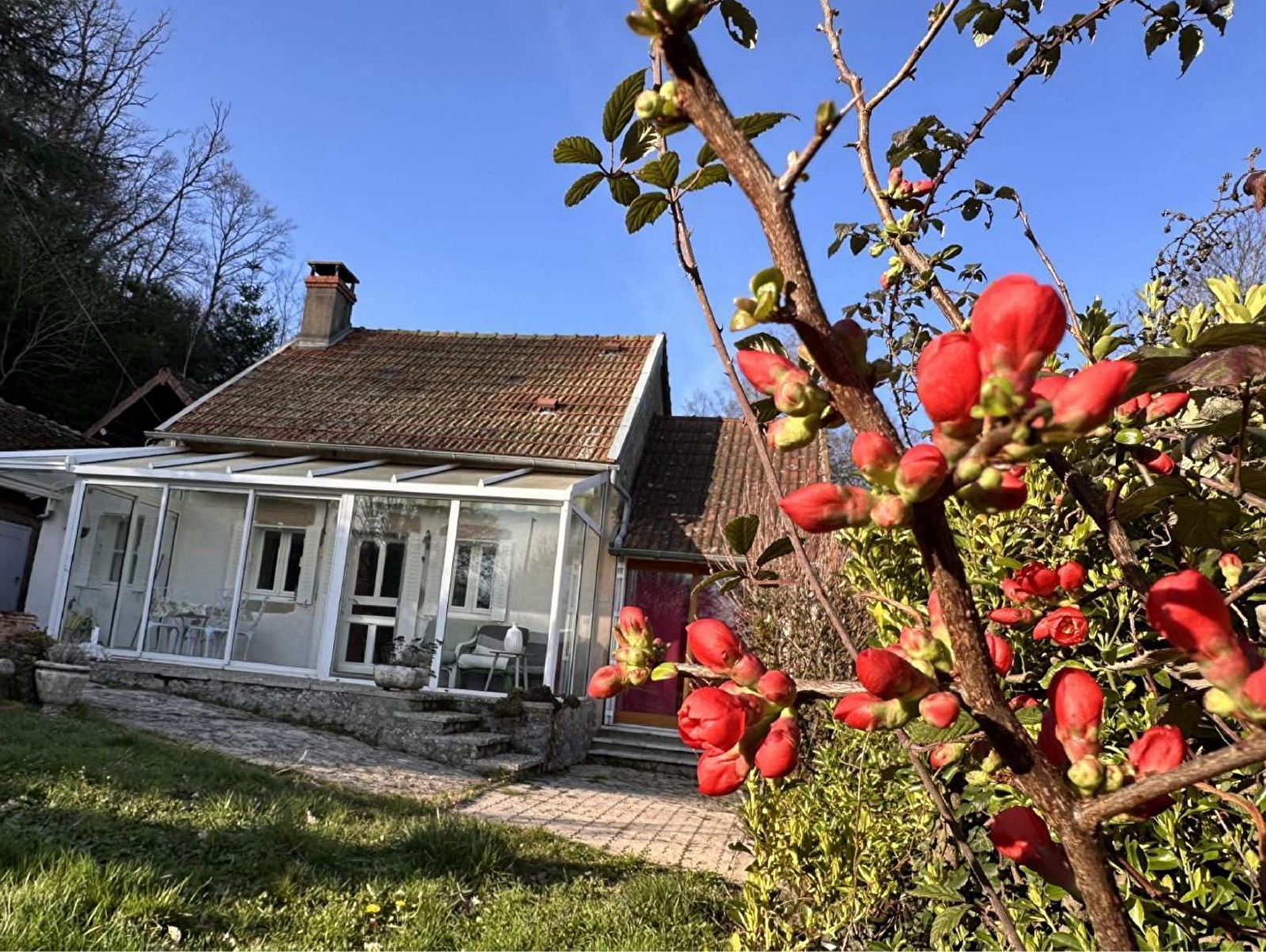 Aline & Yan (agriculteur éleveur en "bio", exploitant la ferme du "Grand Karadok" sise à proximité / visite possible), vous ouvrent les portes d'une charmante authentique fermette morvandelle du XIXème intégralement réhabilitée, nichée au calme à flanc de colline sur un coteau sud-est exposé, en "belvédère" & "balcon panoramique", aux confins d'un pittoresque mini hameau rural. Magnifique écrin préservé de totale nature & verdure, dominant un bucolique vallon boisé de prairies accueillant en saison les paisibles vaches du propriétaire, de races Angus & Wagyu ("bœuf de Kobé"), à l'orée d'une immense forêt sauvage préservée. Littéral havre de paix & repos lové au creux d'un apaisant "paysage de carte postale" de douce montagne vallonnée, 100% ressourçant & relaxant. Possibilité d'observer la faune sauvage sur place (chevreuils, sangliers, renards, écureuils…). Gîte de bon confort. Chaleureux cachet campagnard mixant douce rusticité & insolites touches "fifties" (magnifique sol en "terrazzo"), sublimé par l'âme du bâti d'origine (manteau de cheminée en pierres & poutres). Ambiance douillette conjuguée à l'âme dépaysante d'une ancienne demeure. Agréable jardin clos géré en "tonte naturelle" (en partie pentu). Atypique spa extérieur abrité & vaste terrasse couverte blottie sous un volumineux préau d'esprit "cathédrale" offrant un insolite "mini terrain de pétanque". Très belle vue dégagée sur la campagne environnante.