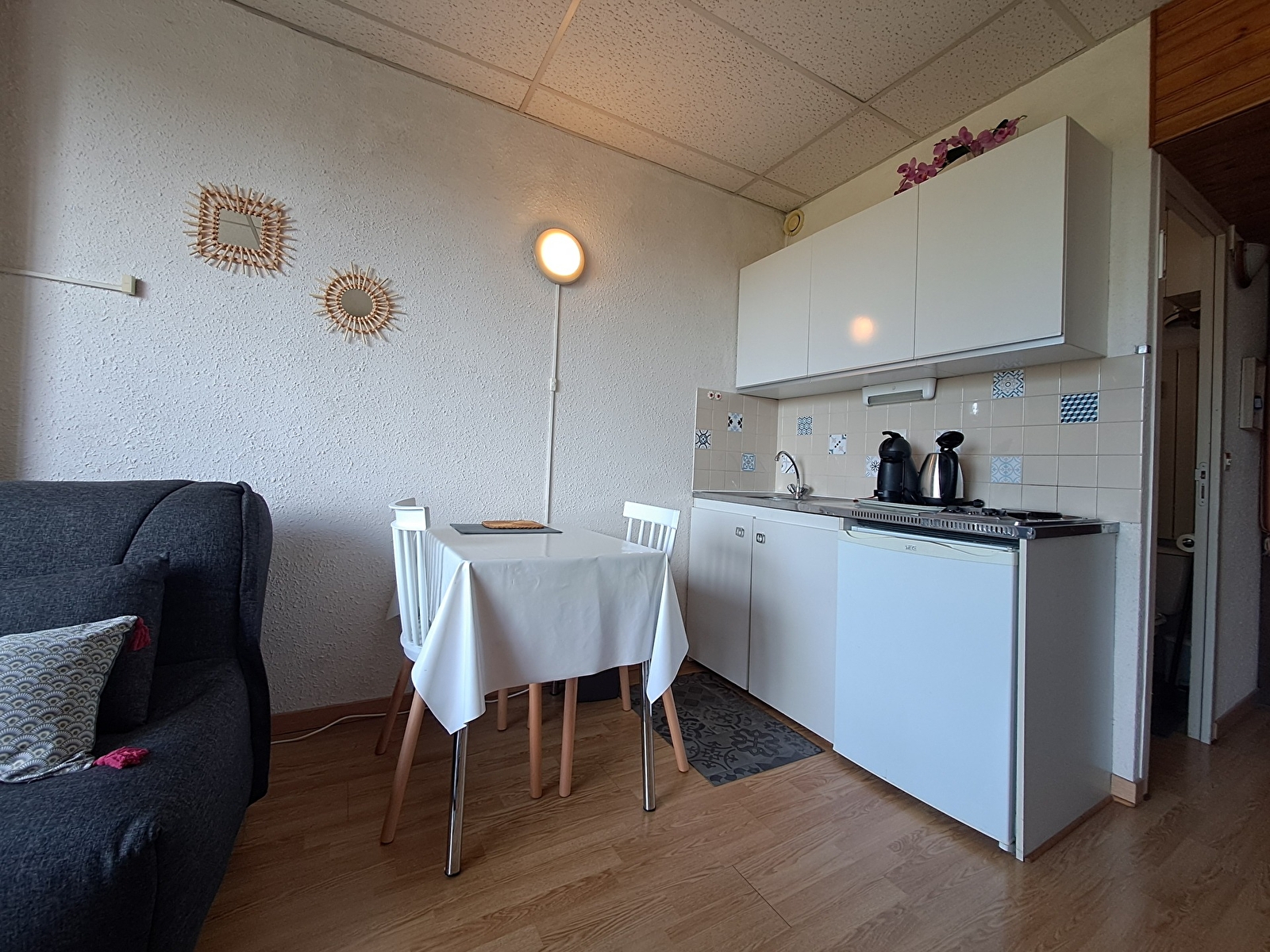 Situé dans la résidence "Le Lacuzon", le studio de 19m² au rez-de-chaussée est composé d'une pièce principal avec coin cuisine et kitchenette, d'un canapé convertible en 140cm et d'un lit placard convertible en lits superposés 80cm.