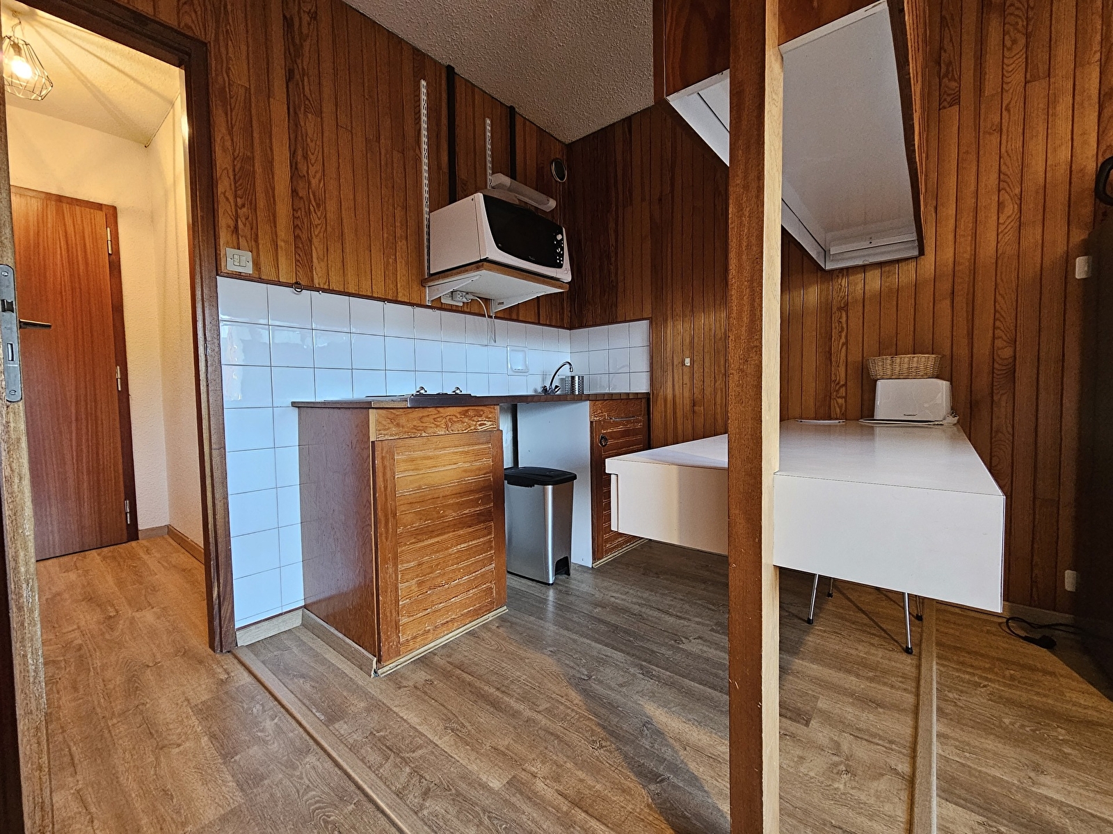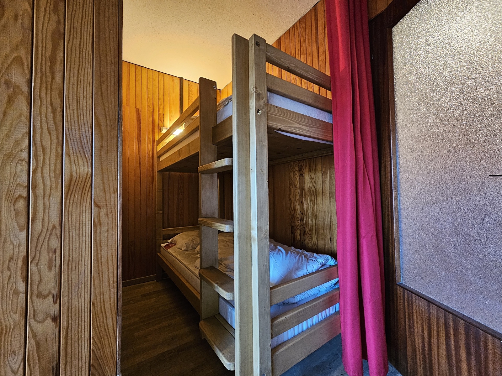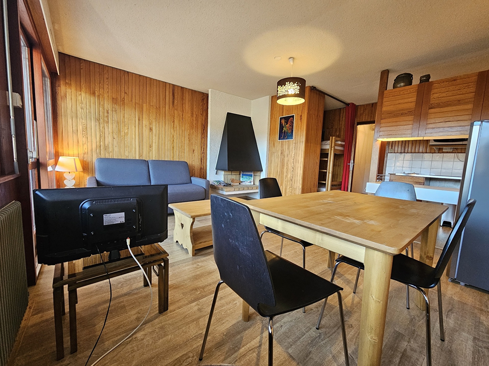 Situé dans la résidence "Le Lacuzon", le studio de 35m² au 5ème étage est composé d'une pièce principale avec coin cuisine/repas, canapé bed express. Coin montagne avec lits superposés de 90cm.