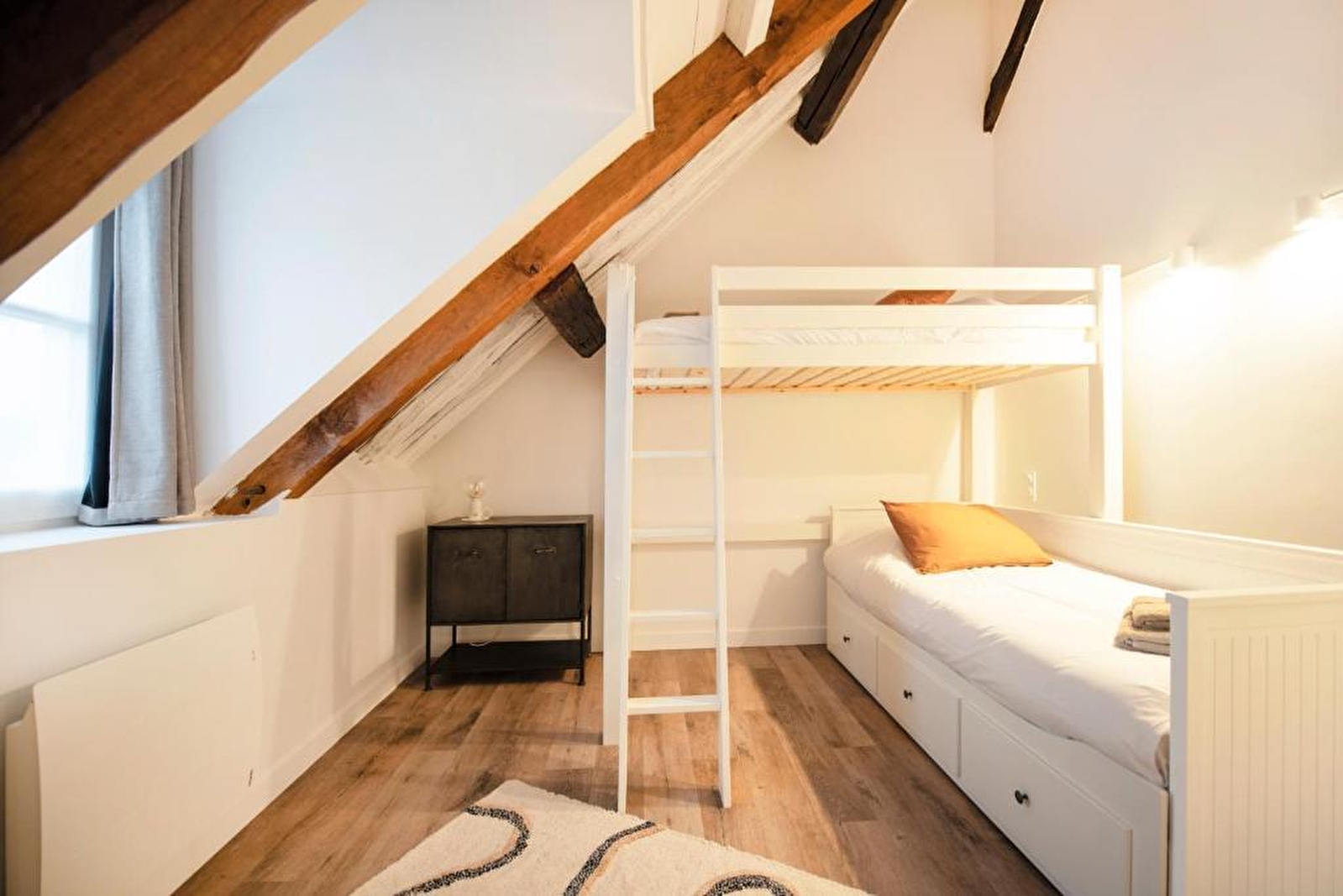 Le logement propose deux chambres, pouvant accueillir jusqu’à 4 personnes, l’une avec un lit queen-size et l’autre avec des lits superposés et une salle d’eau avec toilettes séparés.