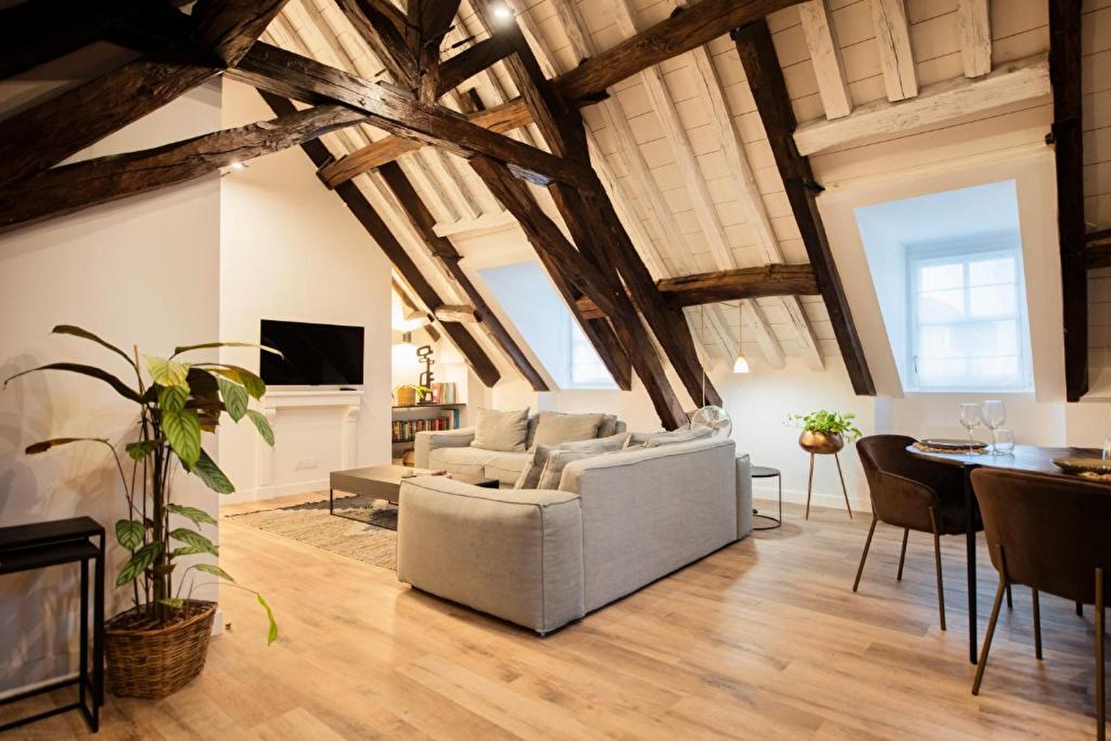 Le Family du Laurencin est un appartement spacieux, moderne et entièrement rénové de 77m² situé au dernier étage d’un ancien hôtel particulier, au cœur de Sens. Vous serez séduits par sa cuisine – salle à manger ouverte sur un séjour spacieux et lumineux, mis en valeur par sa magnifique charpente apparente. La cuisine est entièrement aménagée et équipée et le séjour offre un espace de détente convivial et moderne.