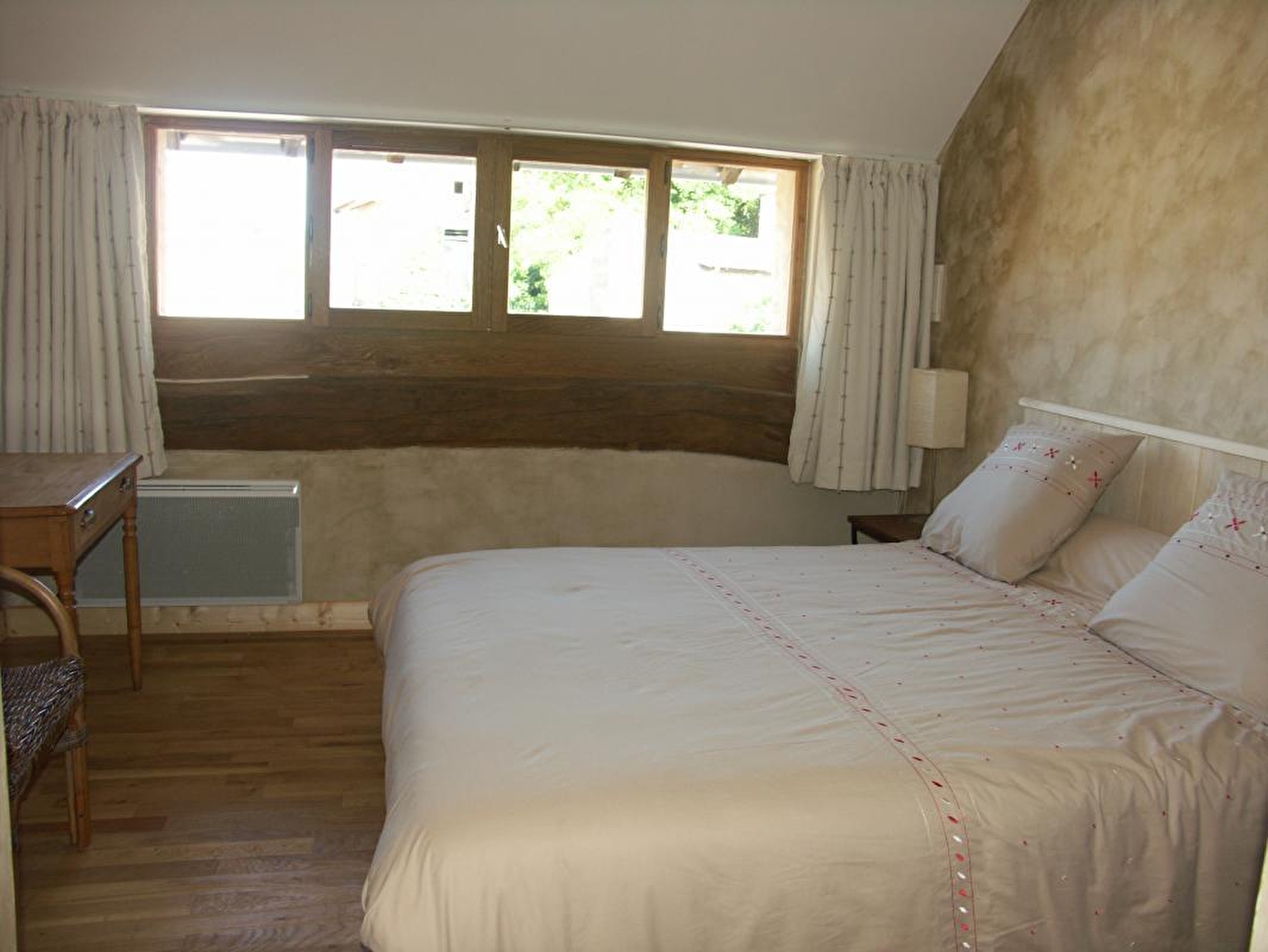 Composition : Maison mitoyenne à grange propriétaires (voisinant leur habitation / indépendance totale). Wifi (fibre). Chauffage électrique + poêle bois. Gîte au 1er étage (en duplex avec demi-niveau / accès par escalier extérieur). 1er étage : séjour-cuisine-salon, 1 chambre (lit 2 p. 160x200cm), salle d’eau (douche), Wcs indépendant. 2ème étage : 1 chambre (2 lits 1 p. 80x200cm). Balconnet + cour-terrasse close (80m² / gravier) + local vélos + parking privés. Supermarché 5 km. Toutes commodités à 5.5 km.